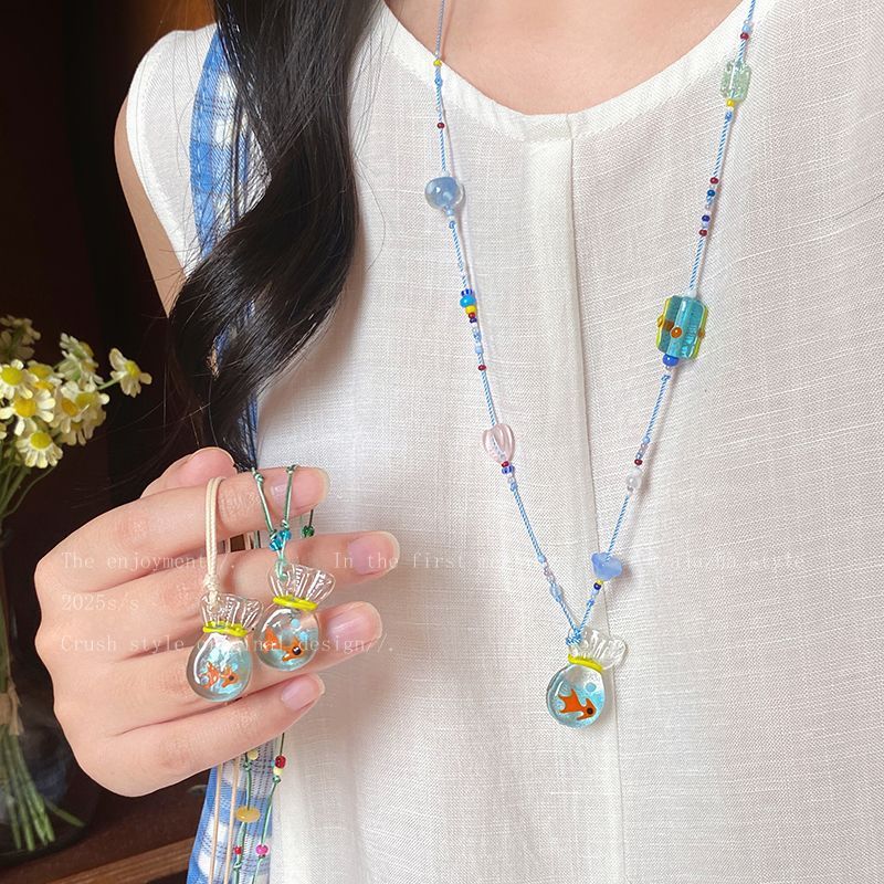 小鱼福袋~锦鲤吊坠配裙子长款项链女生日常百搭适合夏天戴的配饰
