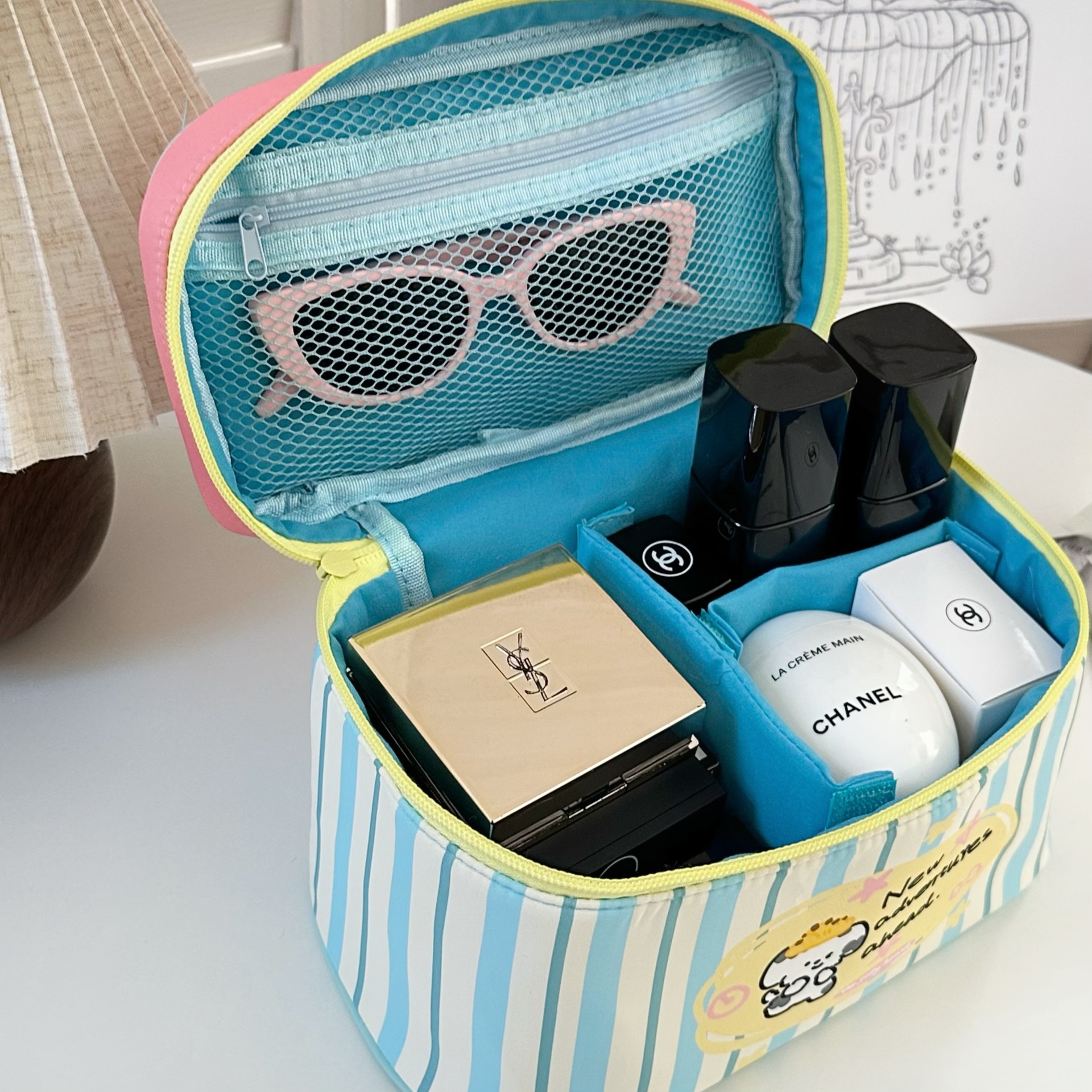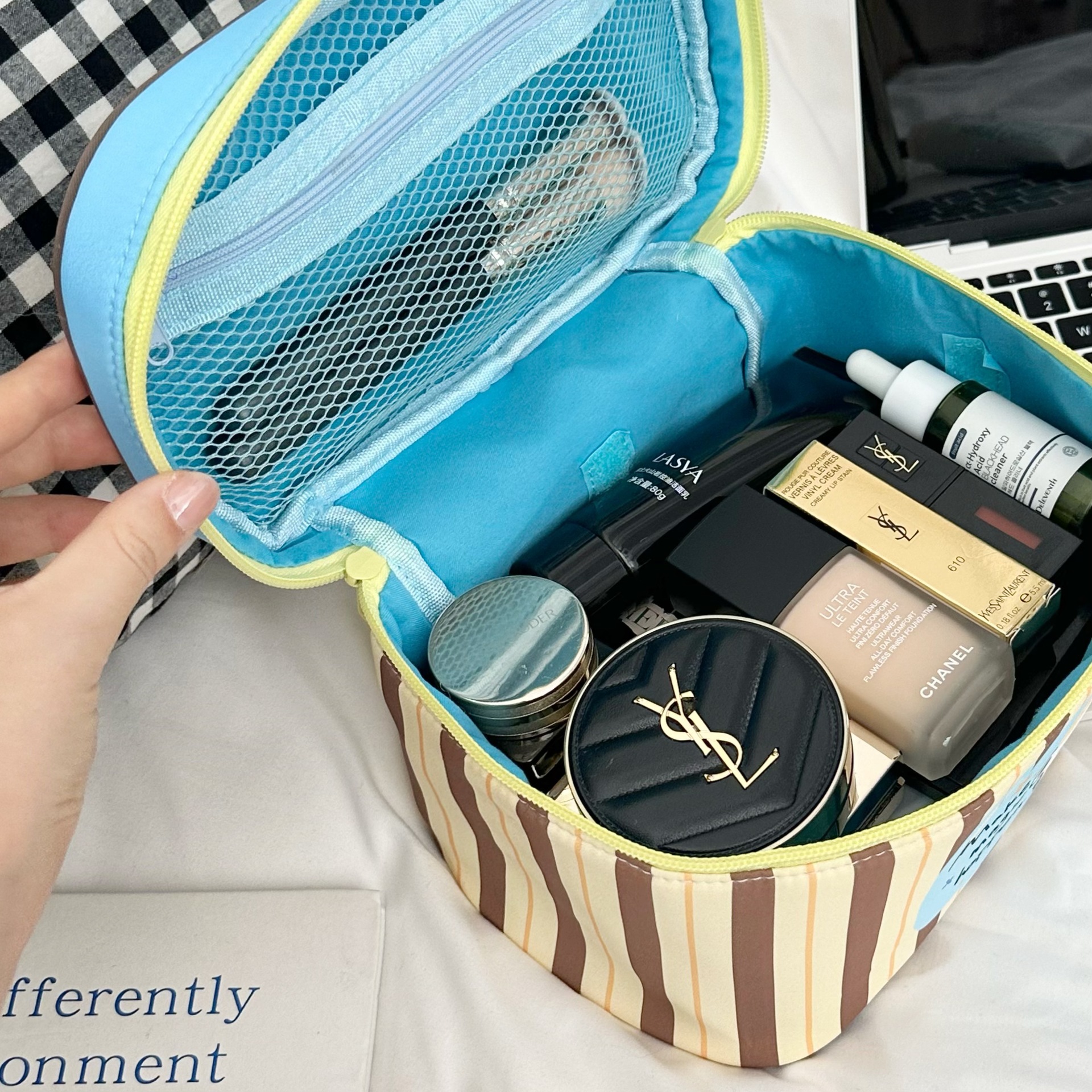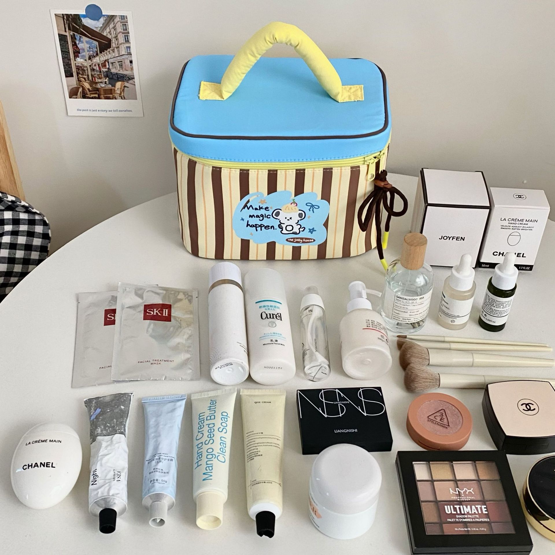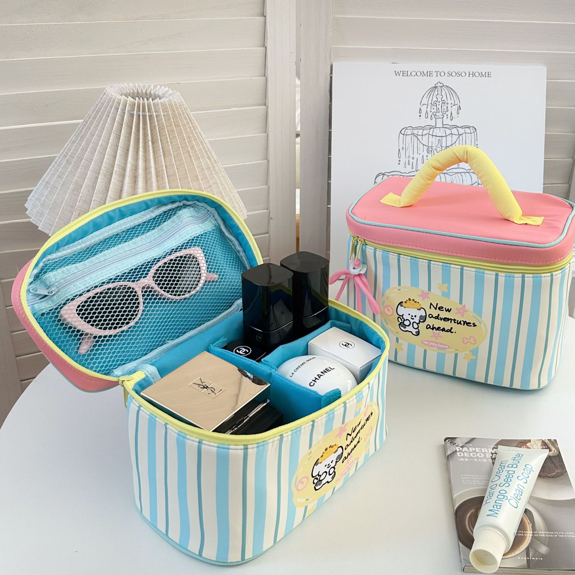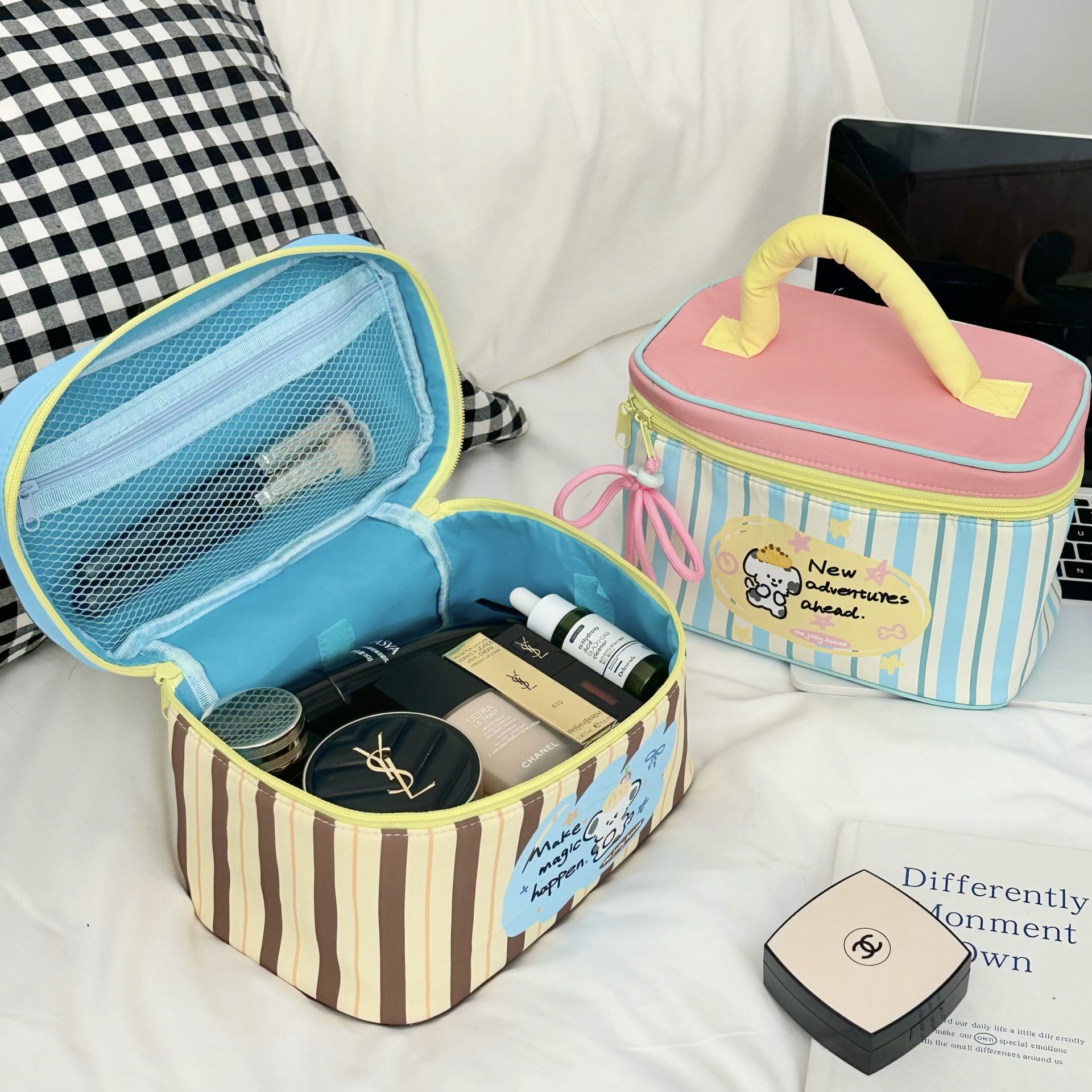 原创条纹小狗化妆包女大容量手提收纳包便携旅行护肤品洗漱收纳袋