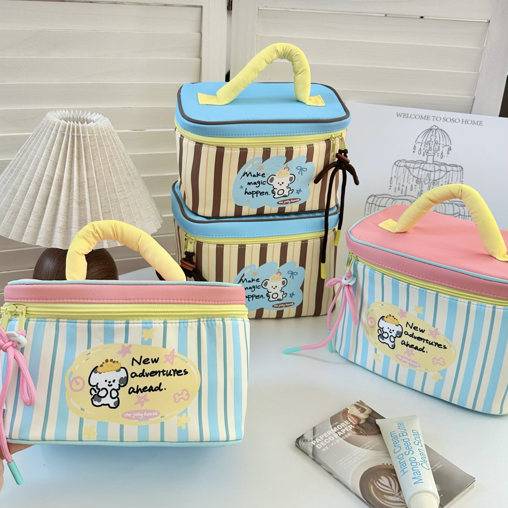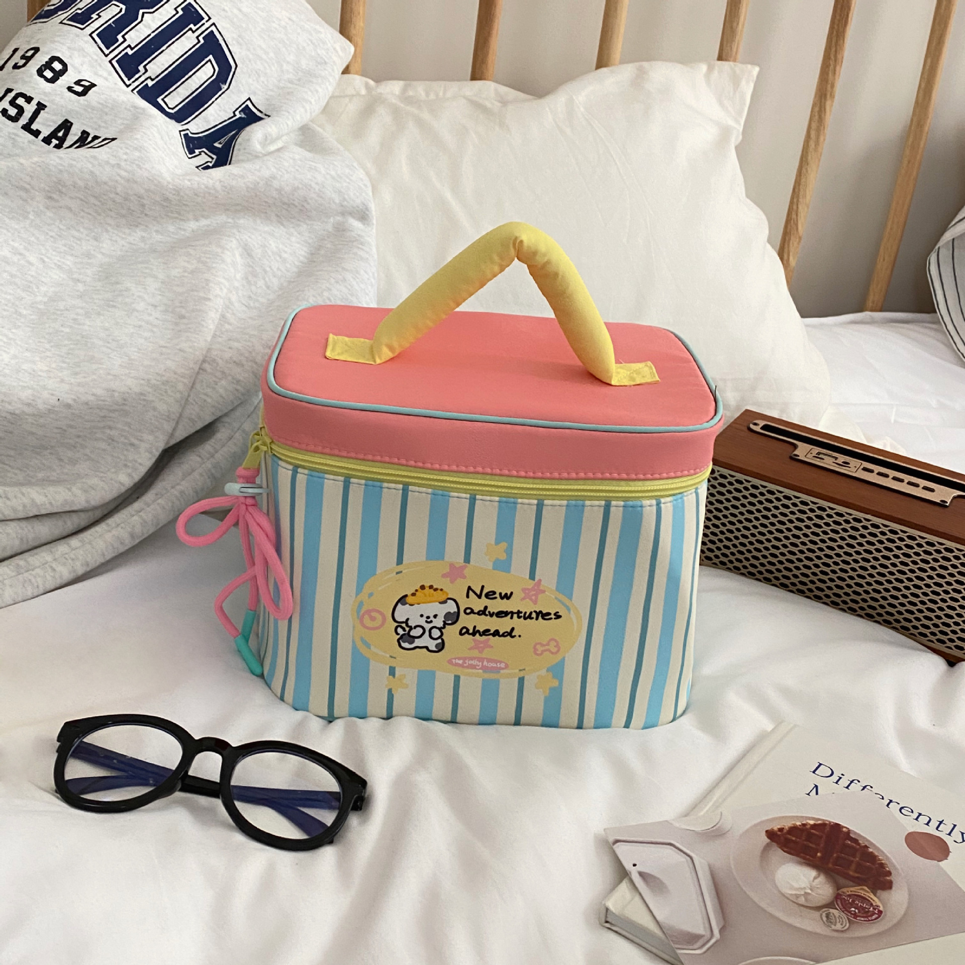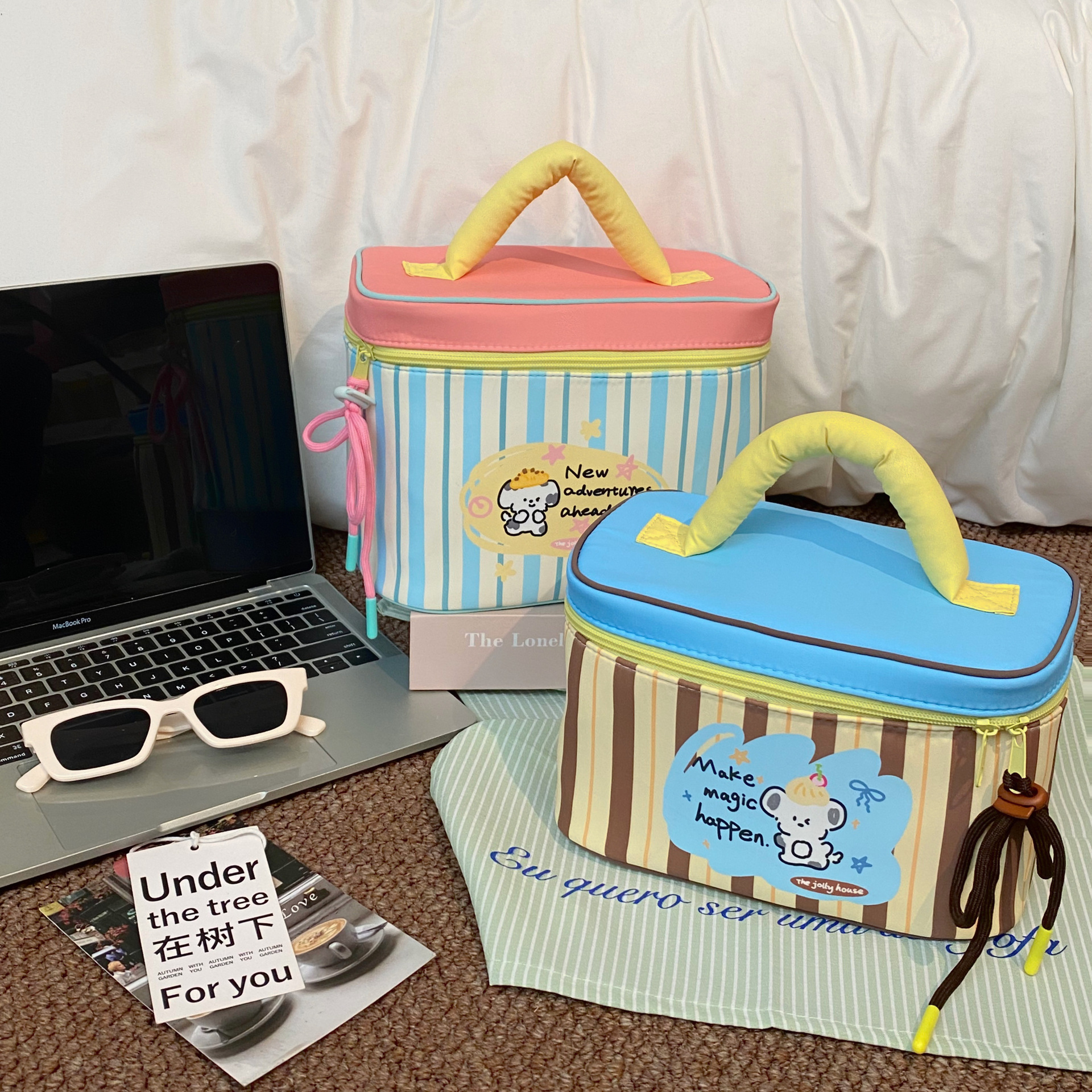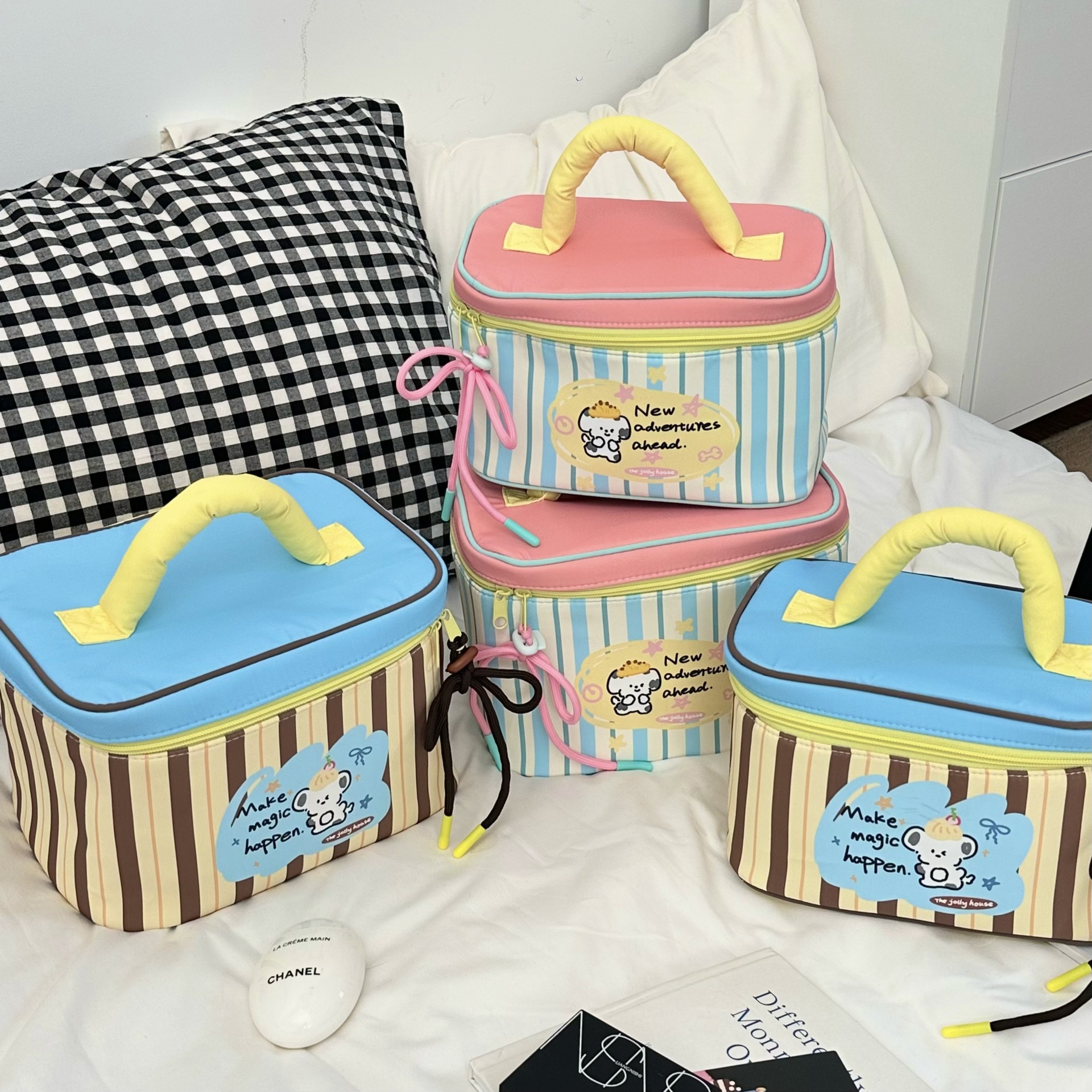 オリジナルストライプ子犬ポーチ手提げ収納バッグポータブル女性大容量旅行スキンケア用品洗面収納袋