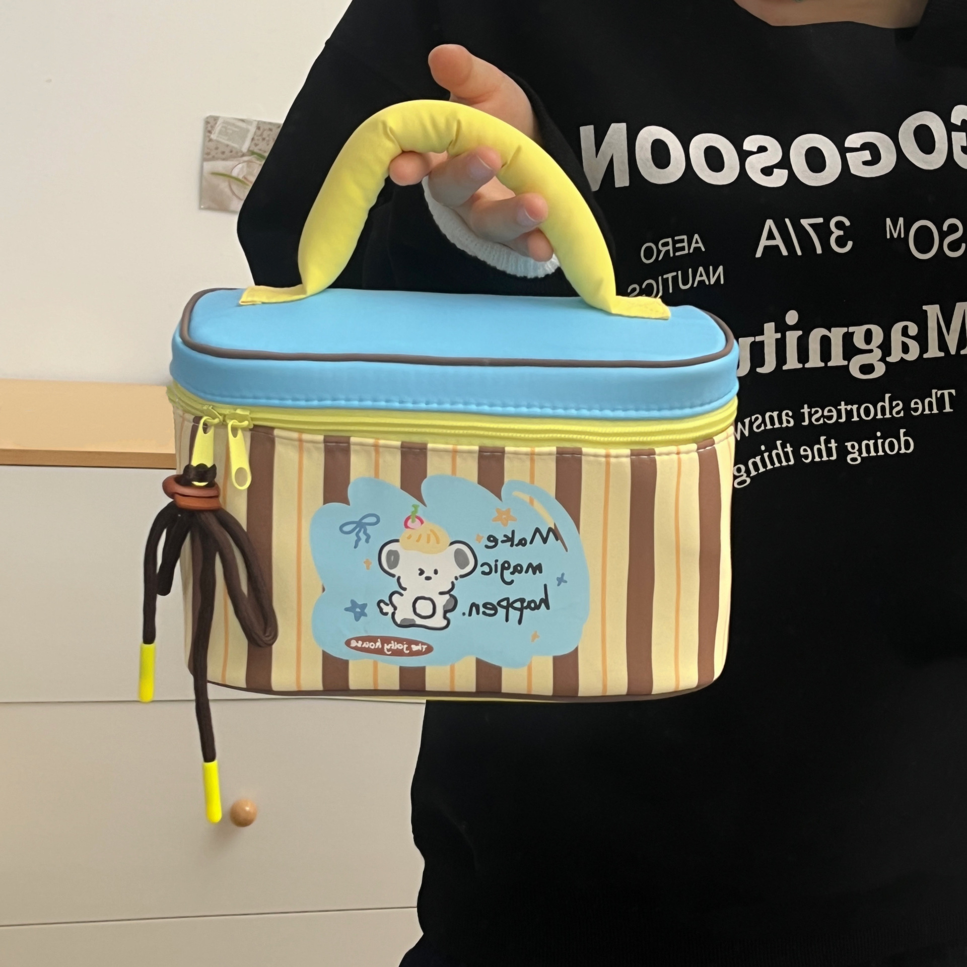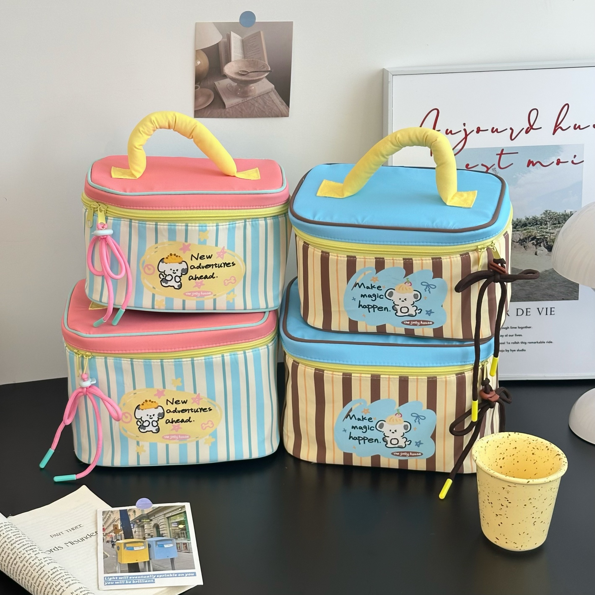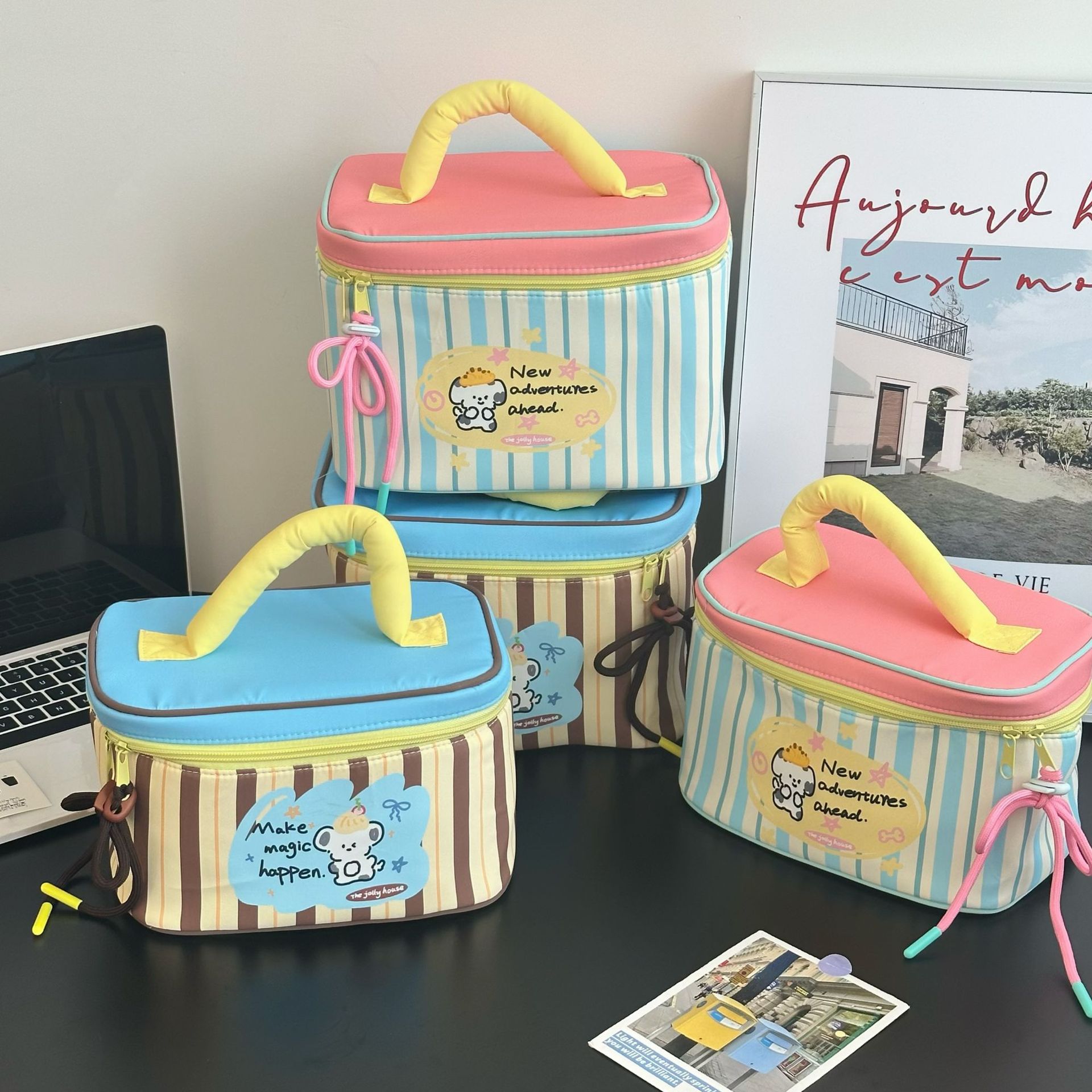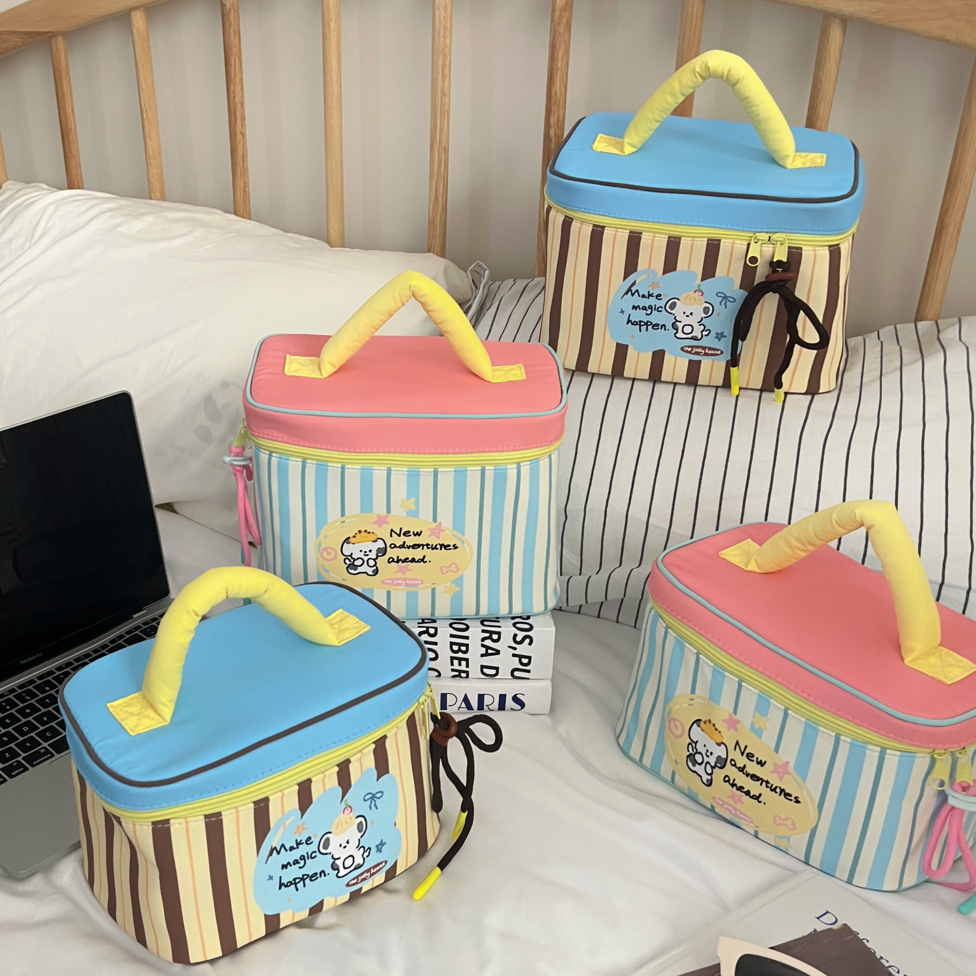 オリジナルストライプ子犬ポーチ手提げ収納バッグポータブル女性大容量旅行スキンケア用品洗面収納袋