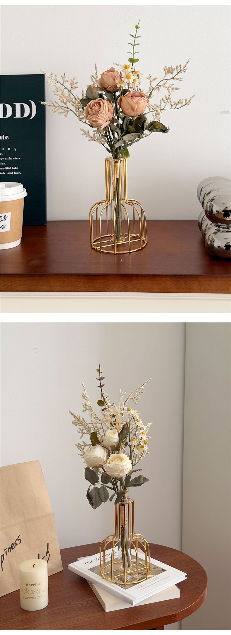 造花フラワーアレンジメント花瓶装飾品ダイニングテーブルデスクトップリビングルーム寝室家の装飾ドライフラワー永遠の花束ガーデニング製品