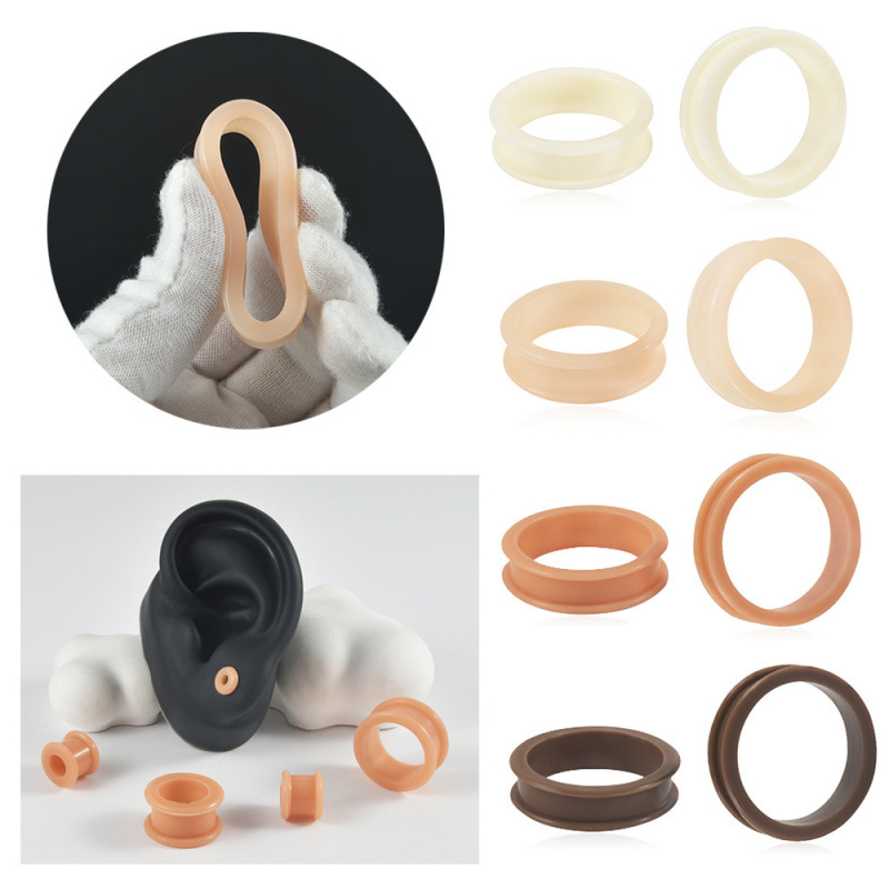肌色のシリコン滑車耳拡張器、目に見えないソフトシリコン耳拡張器、中空滑車耳介~ペア