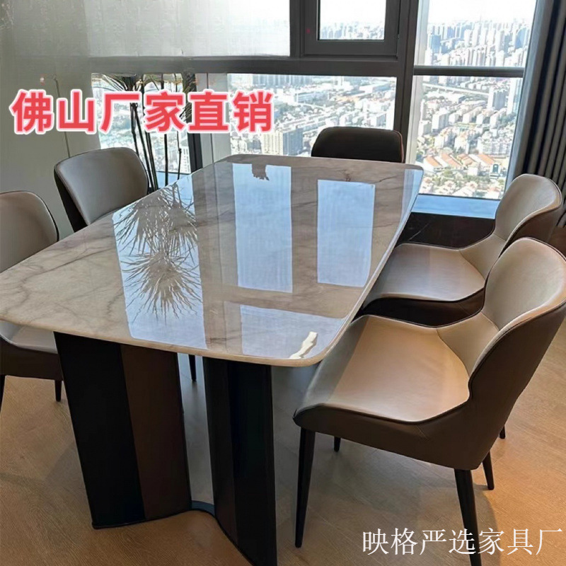 轻奢大理石餐桌椅组合高级感天然奢石超晶石长方形彩晶石微晶石桌