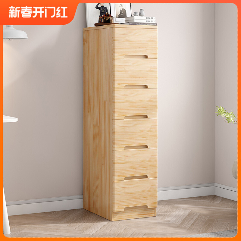 实木夹缝柜抽屉式窄松木斗柜缝隙收纳柜储物边柜床头柜柜子五斗柜