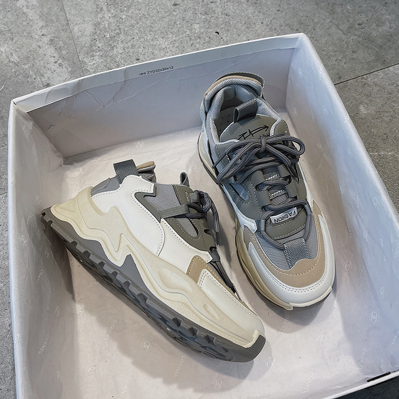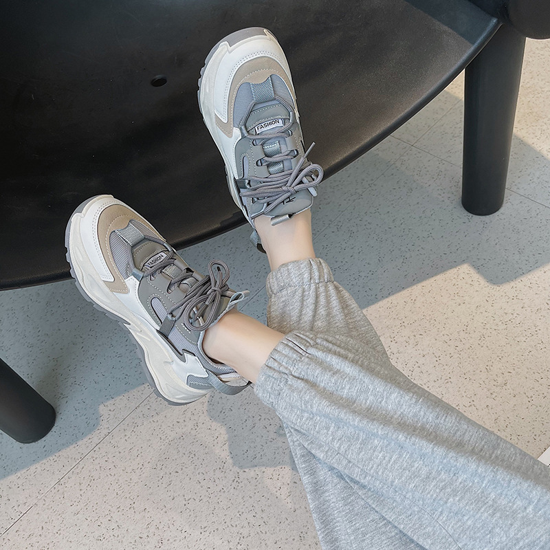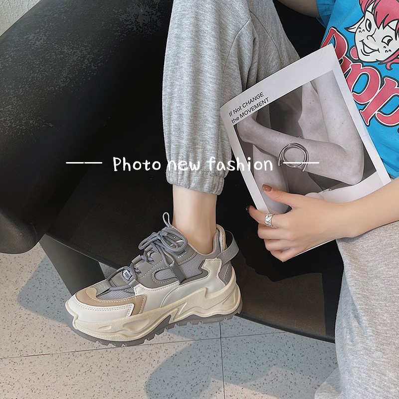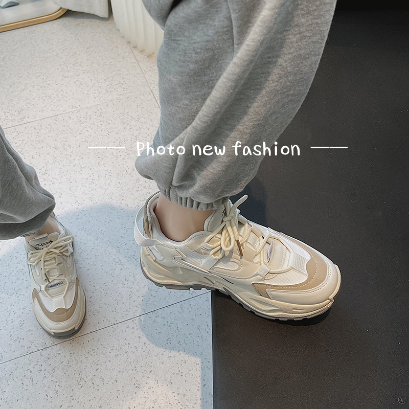老爹風レディースシューズ2025年春新作人気万能インヒールスポーツシューズインスタ映え春秋白スニーカー