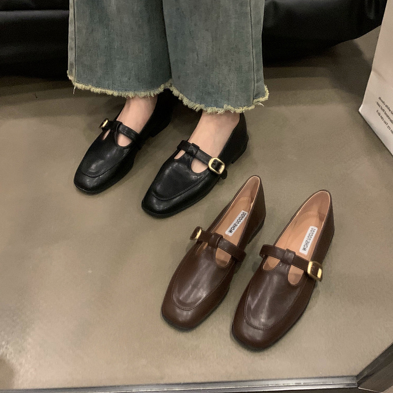 フランス風レトロシューズ レディース 2025年新作 春秋 ソフトソール スリッポン 万能 ローファー レザーシューズ フラットシューズ