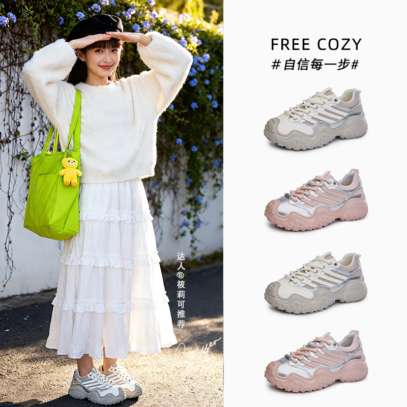 发泡底老爹鞋女2026春夏新款百搭鞋子女厚底透气运动鞋女丑萌女鞋