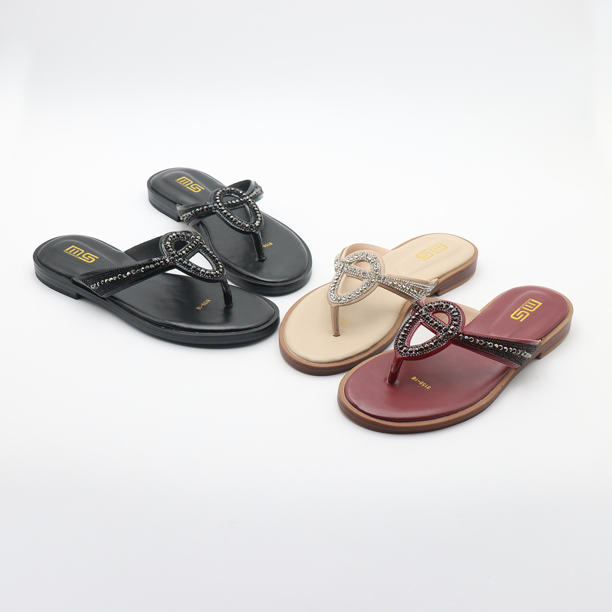 外国貿易のファッションの新型の靴の復古の平底のサンダルの女性の夏の気質の休暇の外は蝶結びの1字のスリッパを着ます。