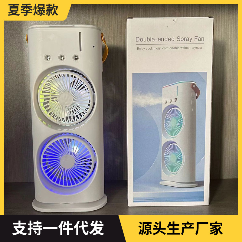 三穴二頭ファン家庭用USB充電首振り加湿冷風機オフィスデスクトップ噴霧ファンクロスボーダー