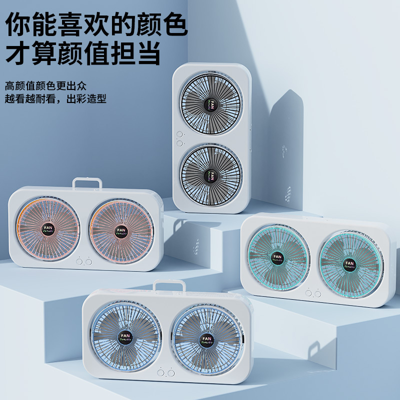 3穴スプレー小型ファン家庭用リモコン付き双頭扇風機充電式首振りカラーライト大型風力ファンクロスボーダー