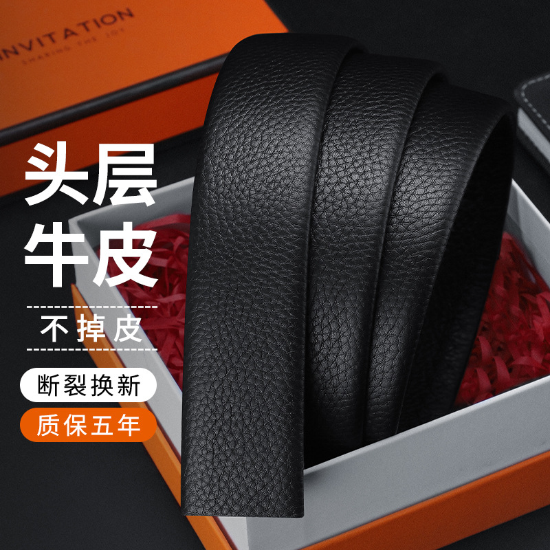 真牛皮皮带正品3.5宽自动腰带男士高档头层新款商务牛皮无头裤带
