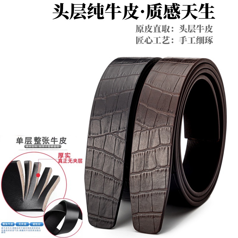 第一層純牛革ヘッドレスバックルレスベルトメンズ本革ヘッドレス自動バックルエクストラロングベルトメンズ中年ズボンベルト