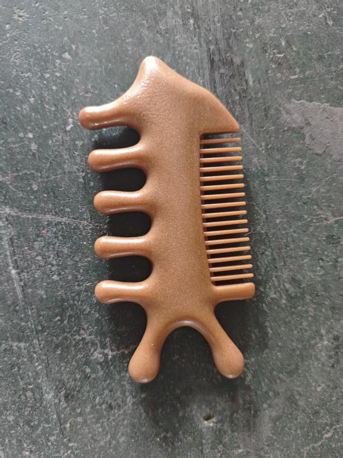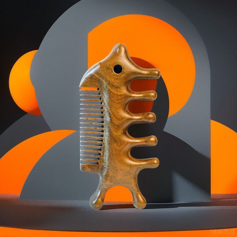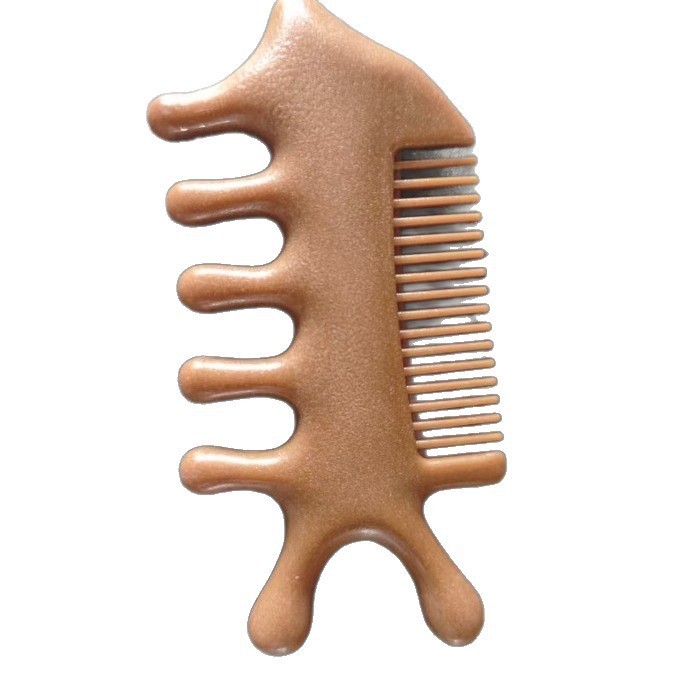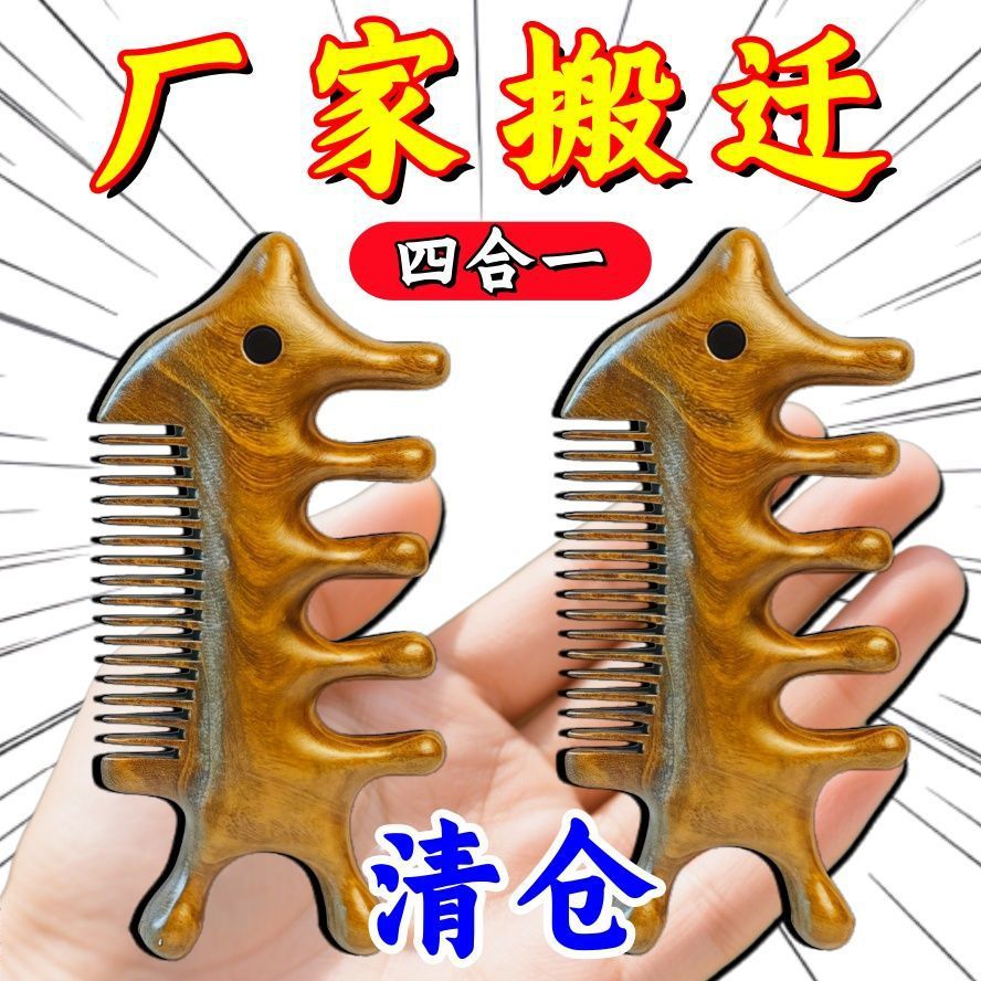 マッサージコーム、ポータブル経絡コーム、天然白檀コーム、ヘッドマッサージコーム、厚みのある広歯ゴールデンシルクサンダルウッド