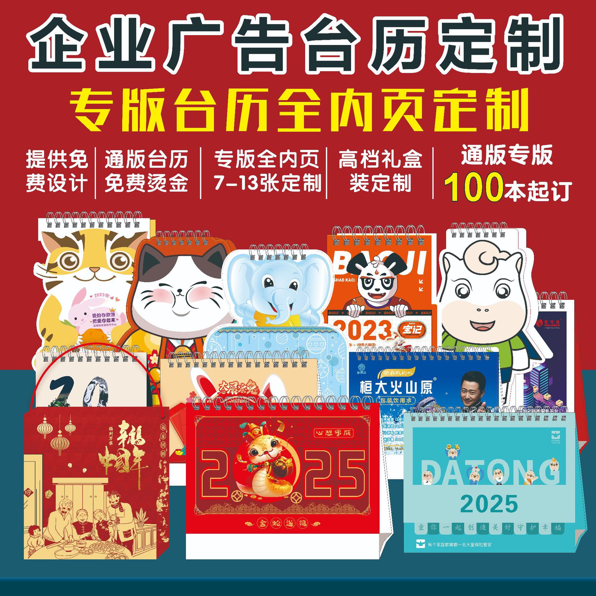2025年巳年ギフトボックス入り企業向け特製カレンダー、ロゴ入り漫画風異形カレンダー、月間カレンダー、ページめくり式ビジネスギフト
