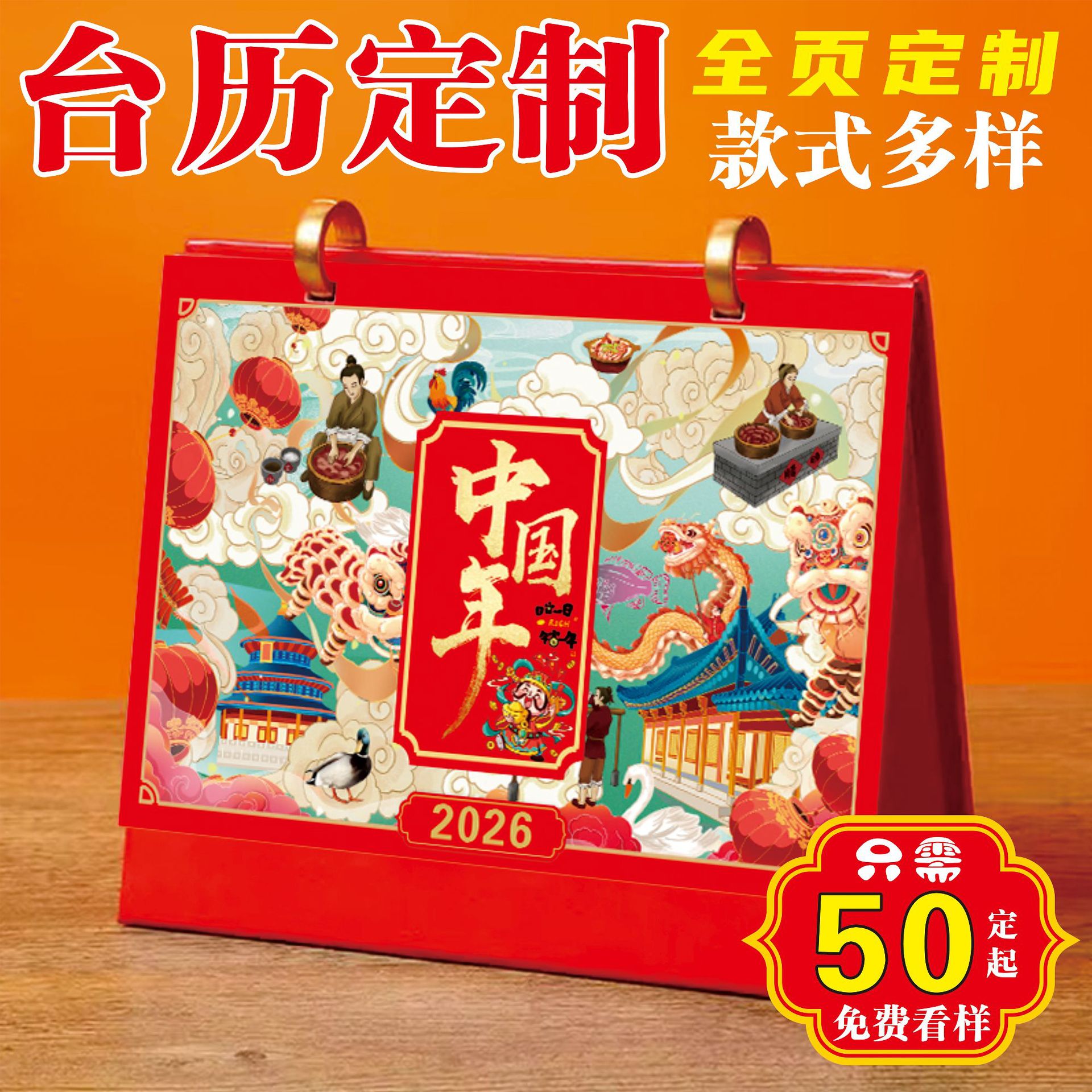 2026年台历创意企业广告日历银行保险专版办公月历印刷台历定制
