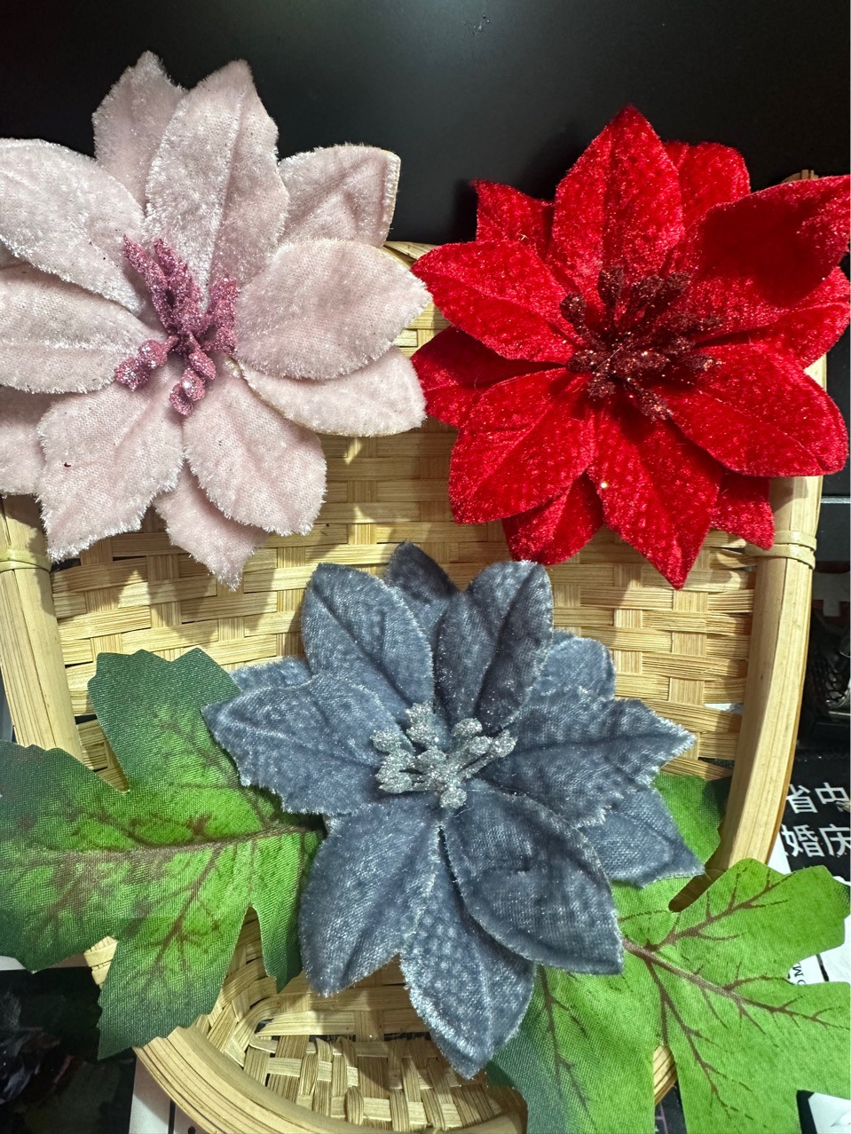 クロスボーダー24cmクリスマス玉蘭高級ベルベットクリスマス花頭クリスマスツリー装飾花玉蘭シミュレーション花卸売り