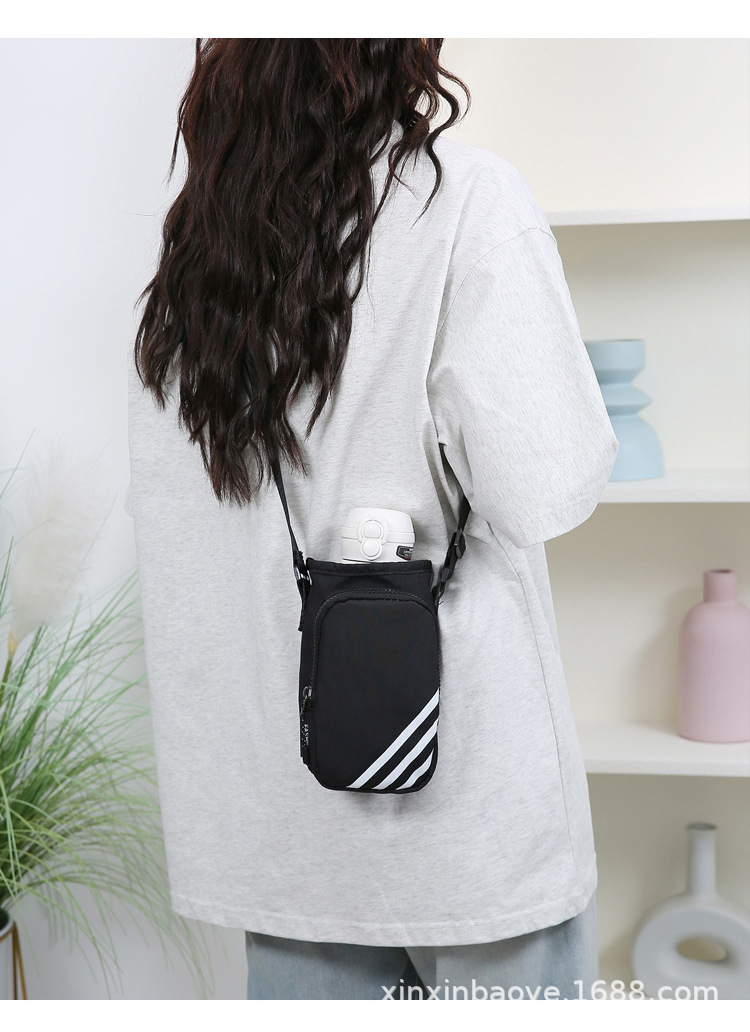 新しいファッショナブルで多用途で便利なウォーターカップバッグ、携帯電話バッグ、ポータブルアウトドアショルダーポータブル調節可能なクロスボディトラベルバッグ