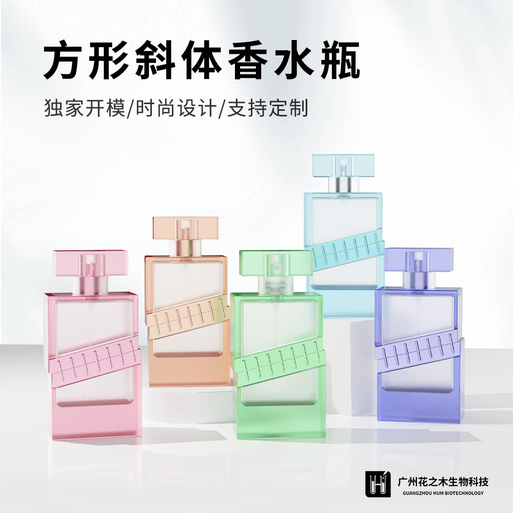 花の木特許50ml香水角形斜体セット瓶透明ガラス香水スプレーメーカーOEM