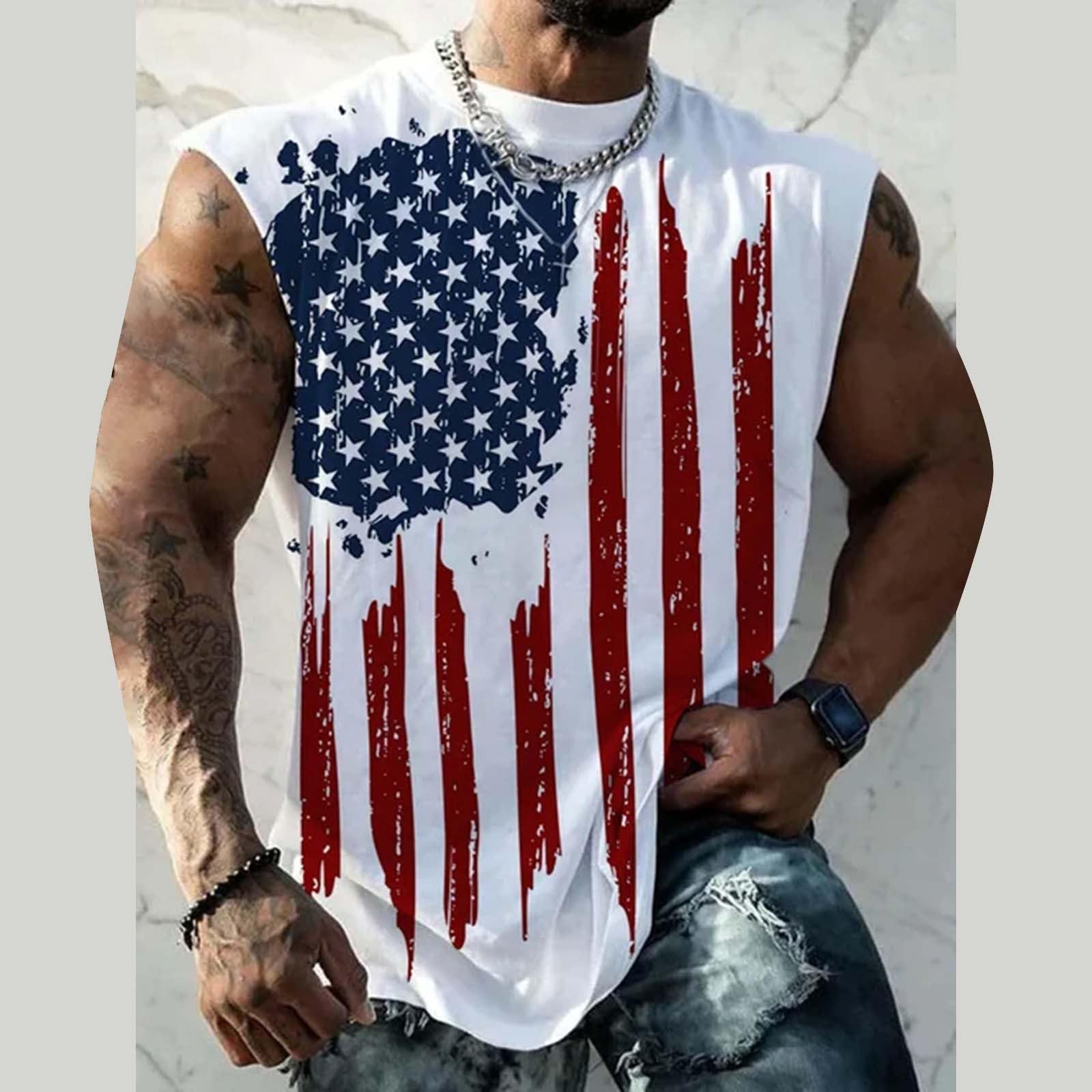 2025 クロスボーダー独立系アメリカンフィットネスベストメンズ 3D プリントトップ夏のランニングスポーツノースリーブ T