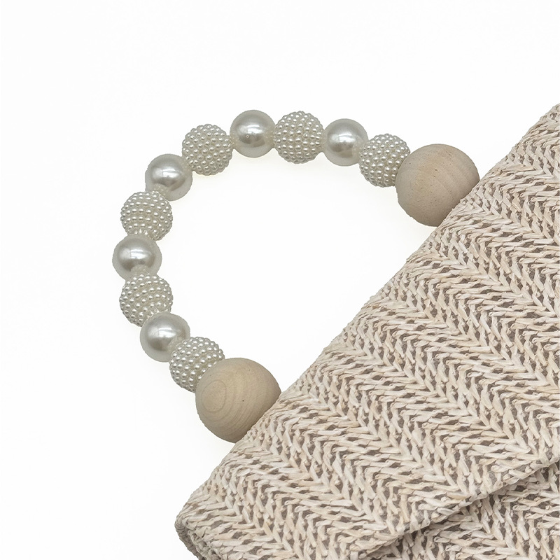 2025 春の新作ストローバッグクロスボーダーイブニングバッグ木製手首ビーチ休暇バッグレディースハンドバッグ夏の海辺