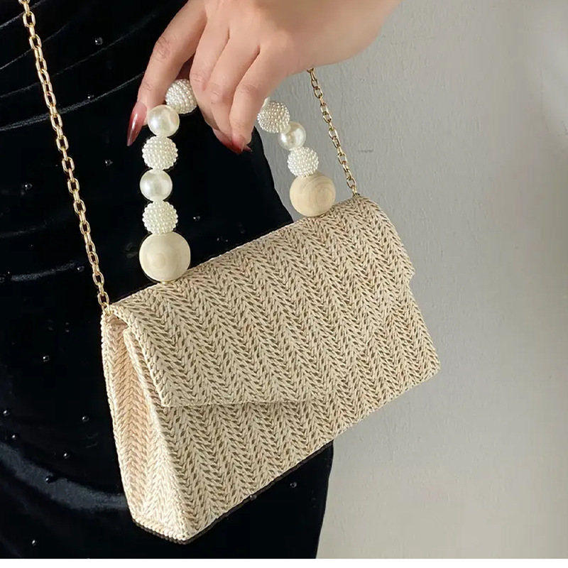 国境を越えた晩餐会は新しい草編みの女性の手を持って真珠を包んで新鮮な女性の斜めなショルダーバッグの欧米の高級感を包みます。