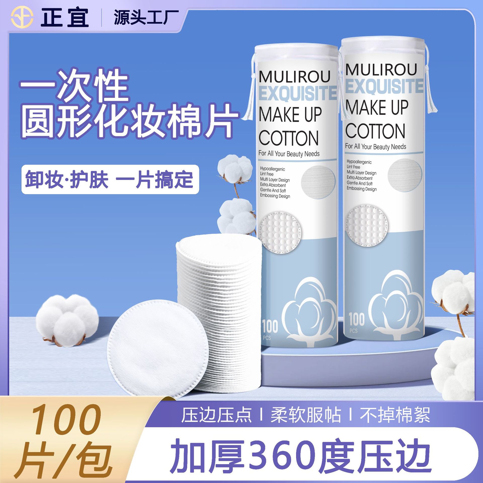 丸型化粧綿、両面増粘使い捨て綿パッド、顔湿布、メイク落とし、ネイルリムーバー、エンボス加工エッジ