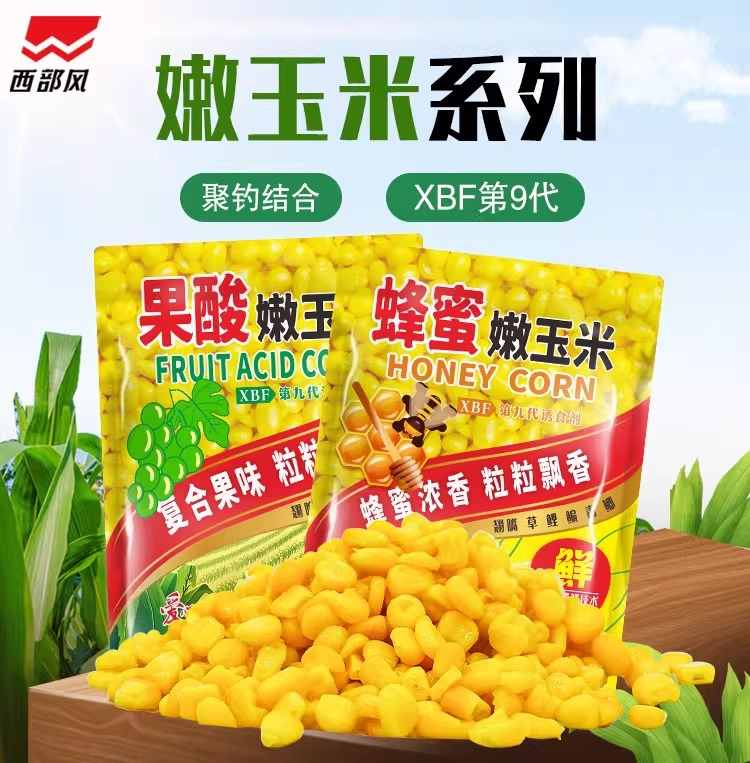 西部の風の蜂蜜の柔らかいトウモロコシの野は口を上げます鯉の草の青い魚の巣の料の果実の甘酸っぱい柔らかいトウモロコシの餌の35袋/箱