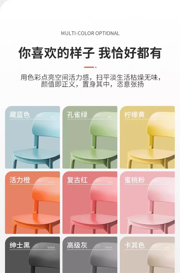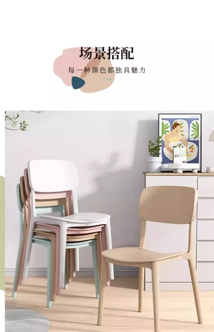塑料椅子家用加厚餐厅餐桌餐椅商用现代简约凳子靠背北欧滑轮矮凳