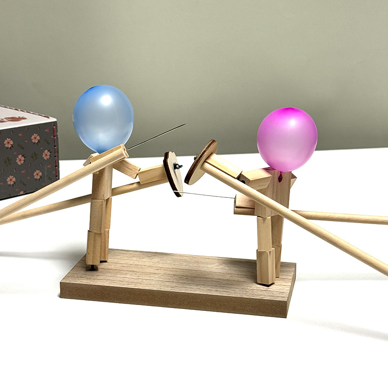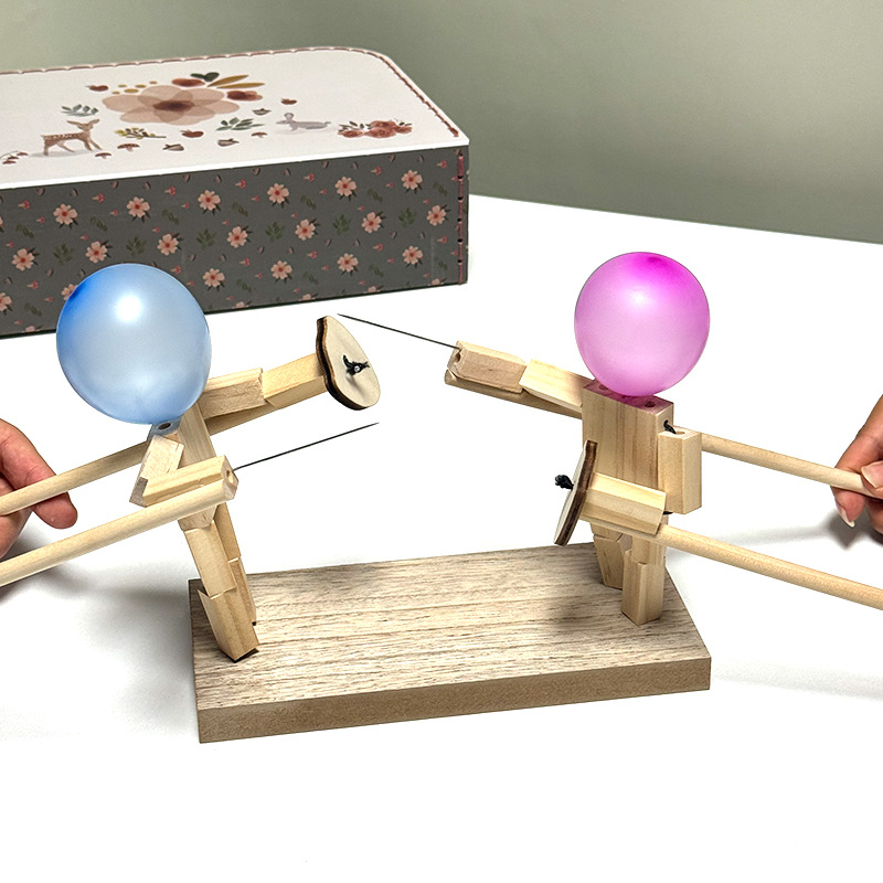 竹节人二人对战玩具父子情侣趣味扎气球亲子互动益智对战木头人偶