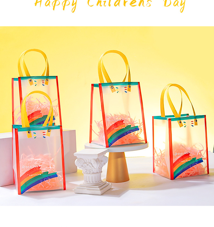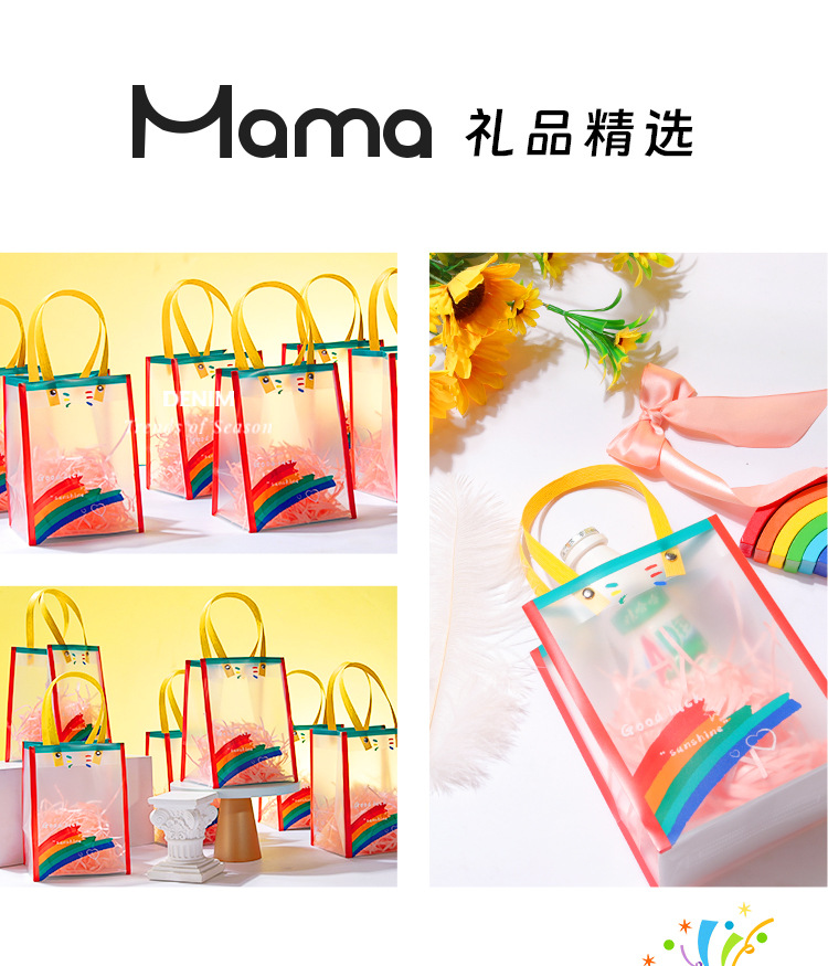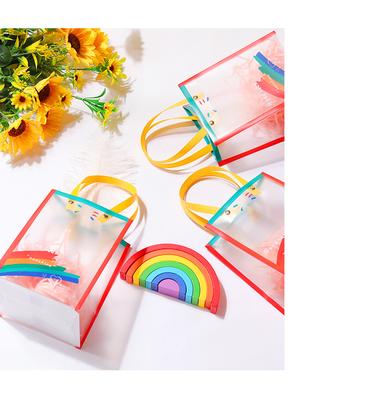 透明礼品袋儿童伴手礼袋子pp塑料手提袋彩虹pvc手提袋礼物袋批发