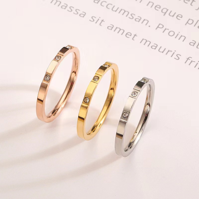 韓国版のシンプルで多用途なダイヤモンド付き英字チタン鋼リングカップルインターネットセレブコールドスタイルピンキーリング装飾