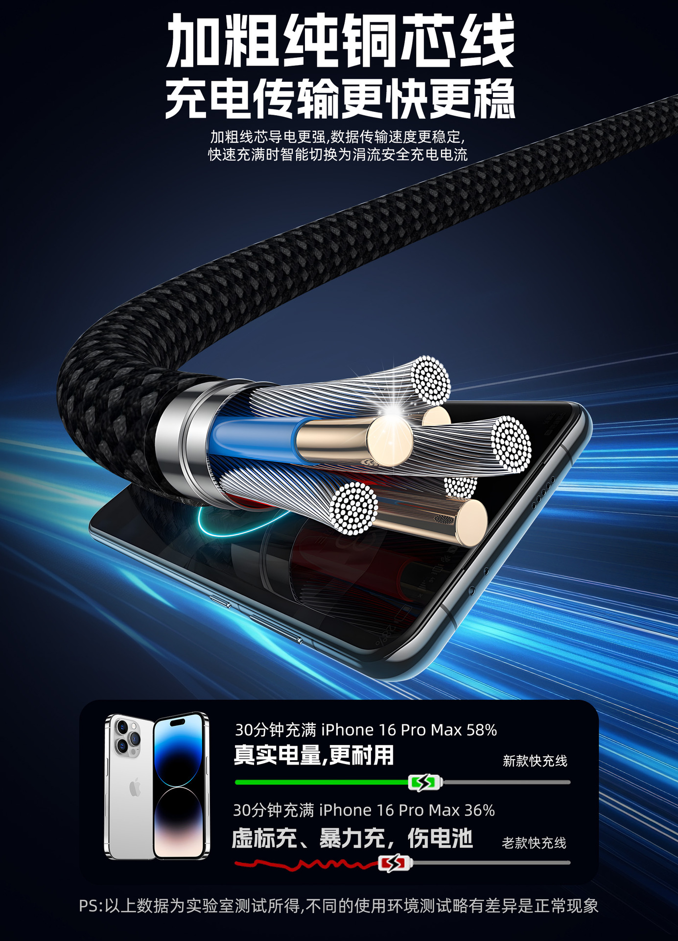 新型二合一Type-Cデータ線PD100W速充線携帯電話タブレットノート一引き二通用線