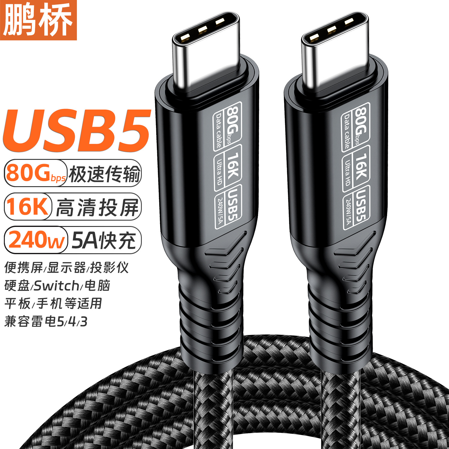 usb5数据线type-ctoc80Gbps硬盘线16K投屏线便携屏5A快充兼容USB4