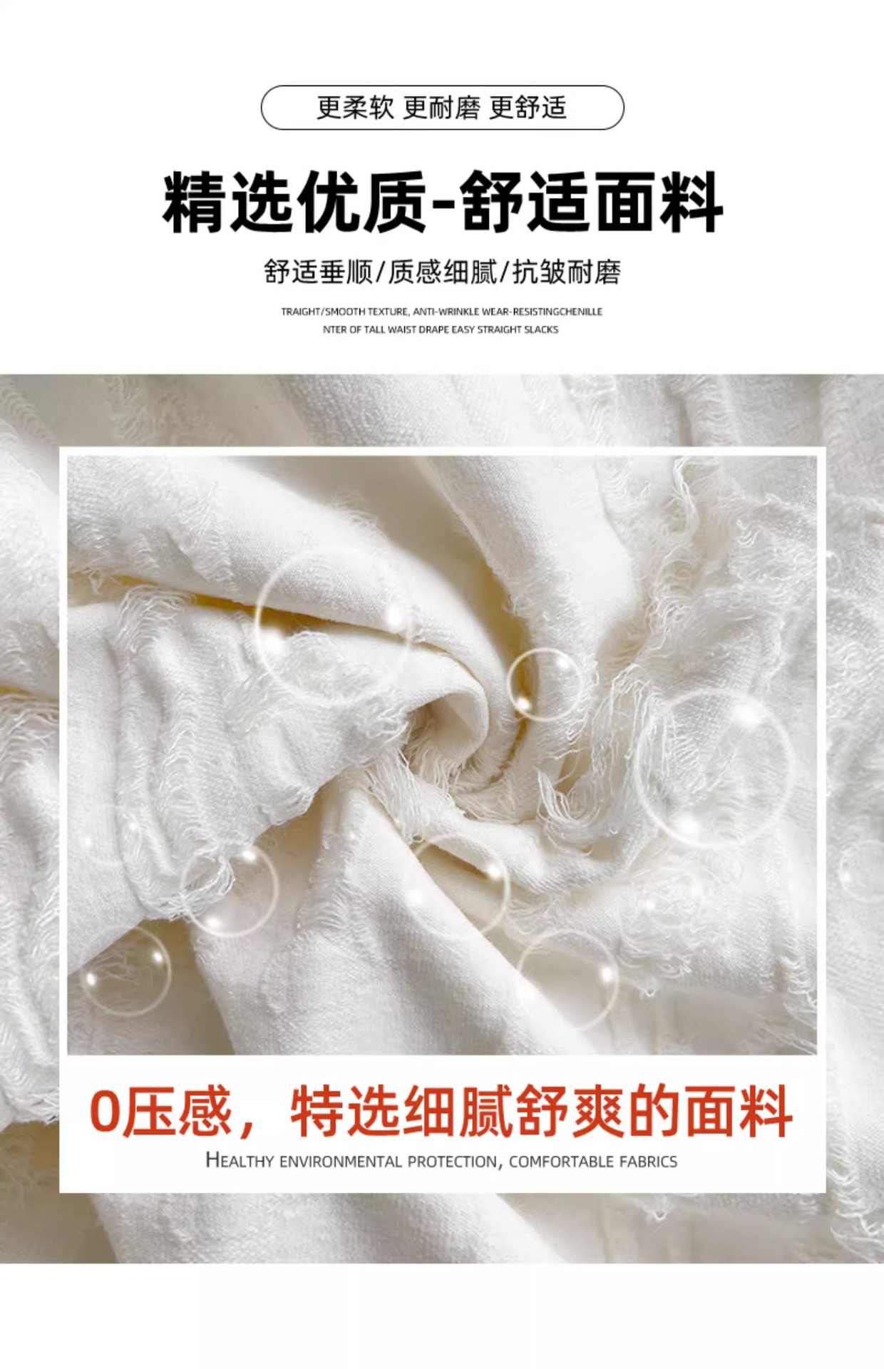 ブルーのシェニールのワイドパンツの女性の秋冬の綿のズボンの外は腰が高くてゆったりしています。