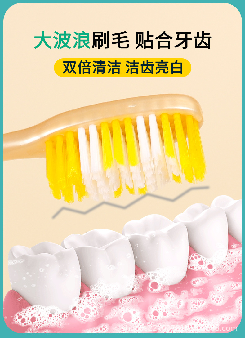 三笑美洁高档中硬毛牙刷波浪刷头成人牙刷强效去渍家庭装独立包装