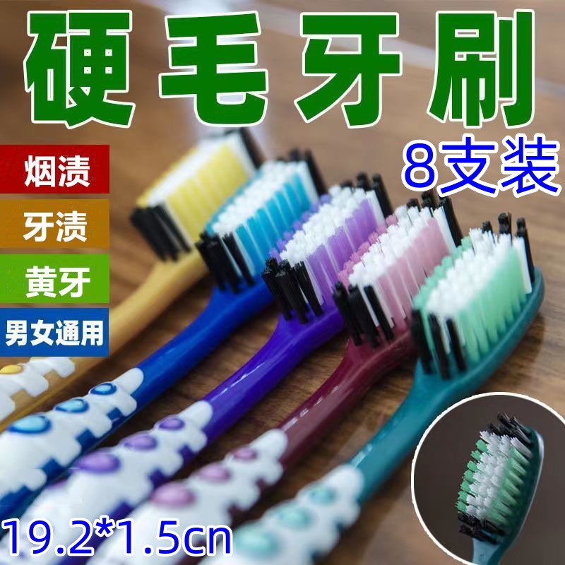 8支装硬毛牙刷成人家用中硬毛家庭口腔护理
