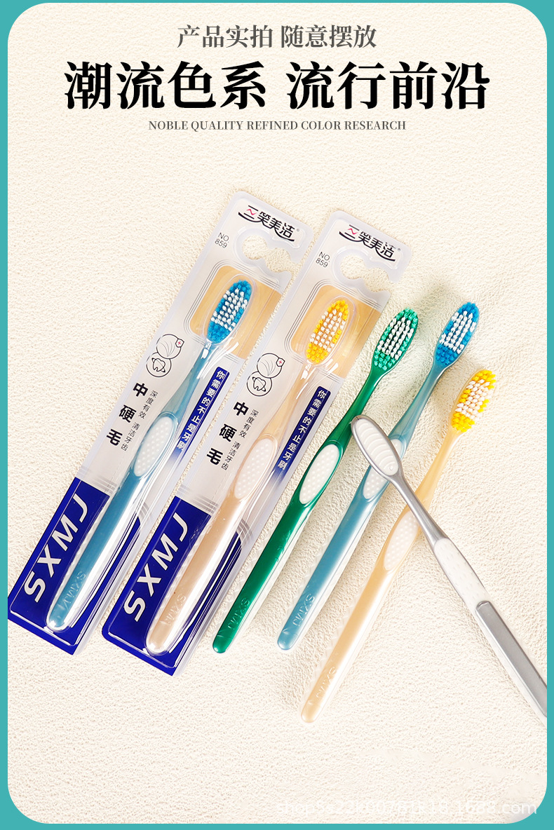 本物の Sanxiao Meijie 新しい中硬毛歯ブラシ男性用硬毛汚れ除去クリーニング高密度軟毛家庭用組み合わせパック