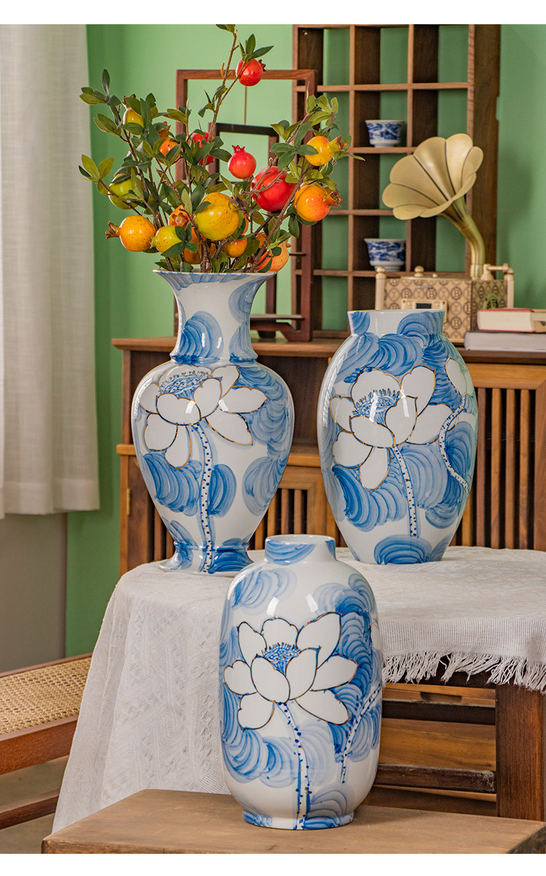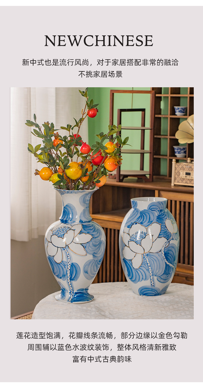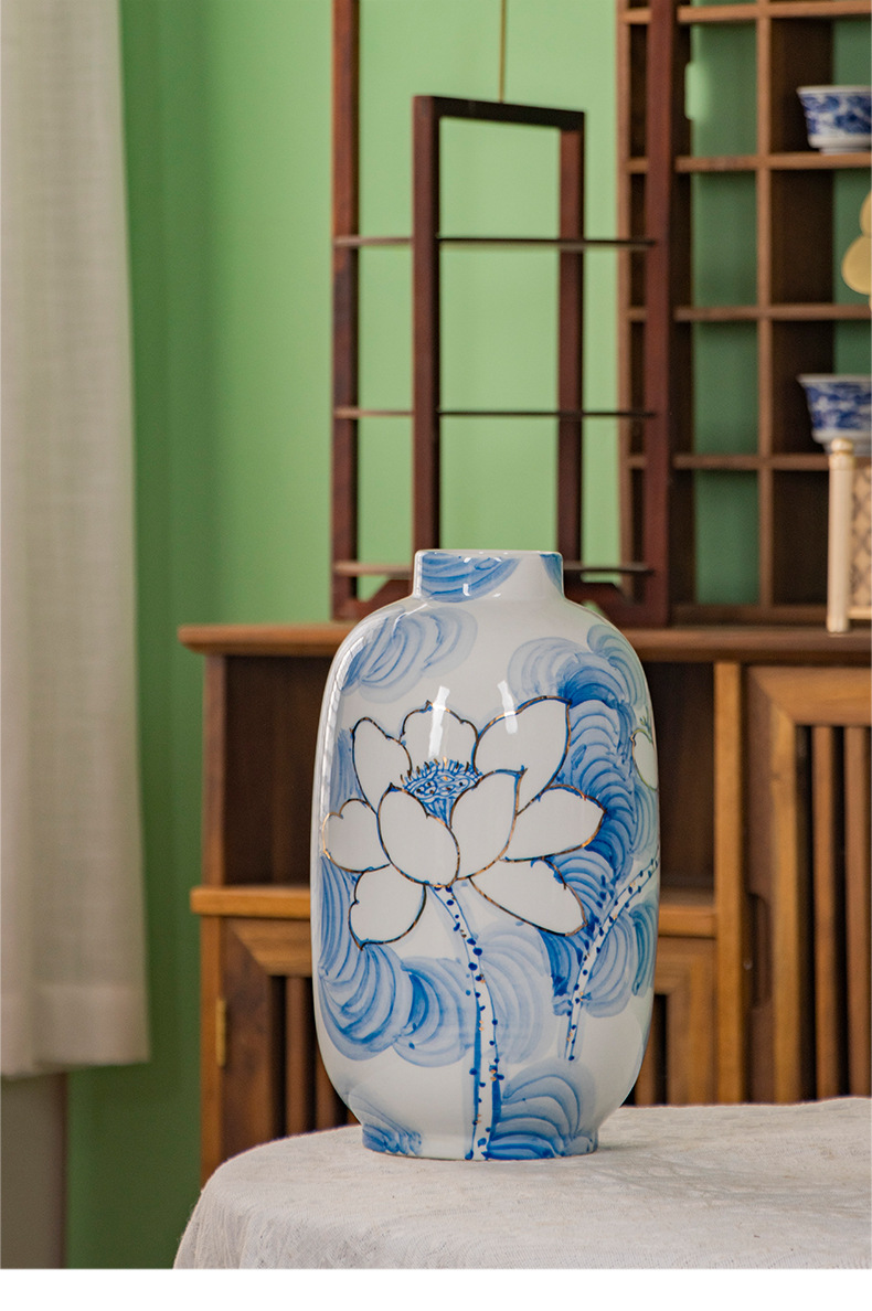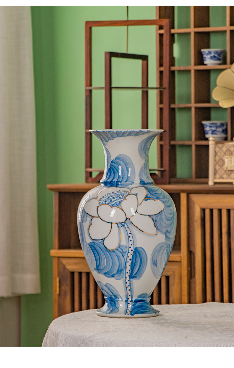 Yutong「手描きの蓮の花と金」新しい中国風の青と白の磁器花瓶ライト高級風景徳鎮コレクションセラミック装飾品
