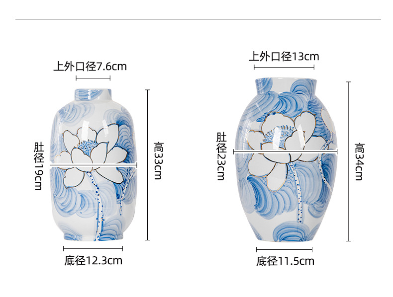 新中国式青花磁器花瓶水培陶磁器飾り瓶軽豪華客間食卓陶磁器花瓶置物