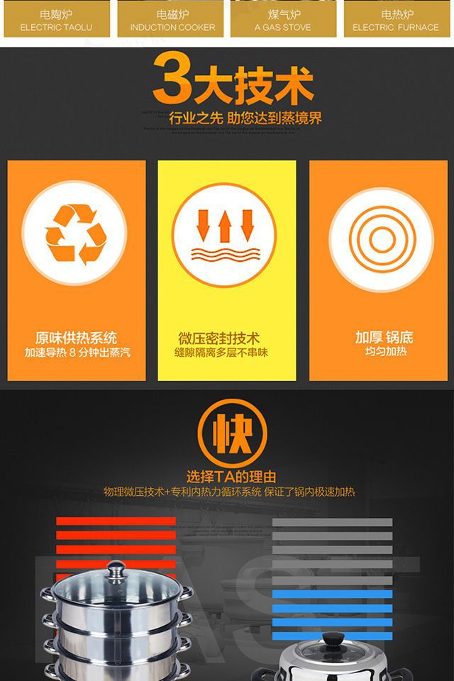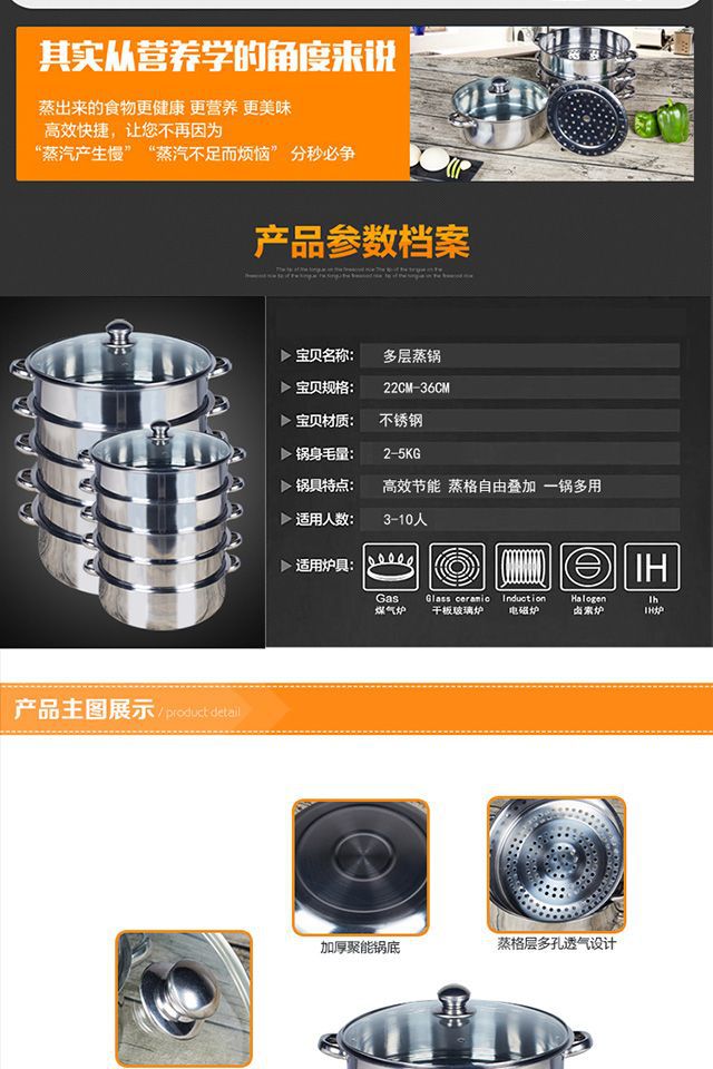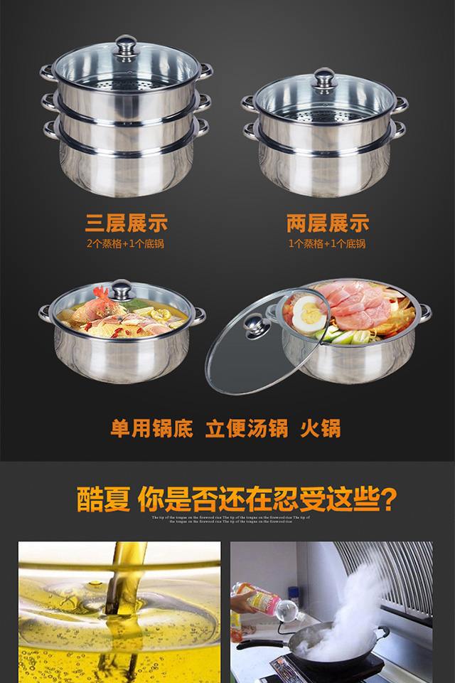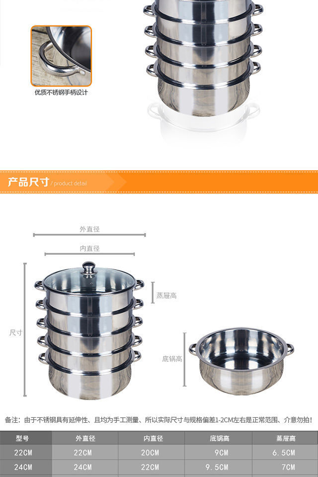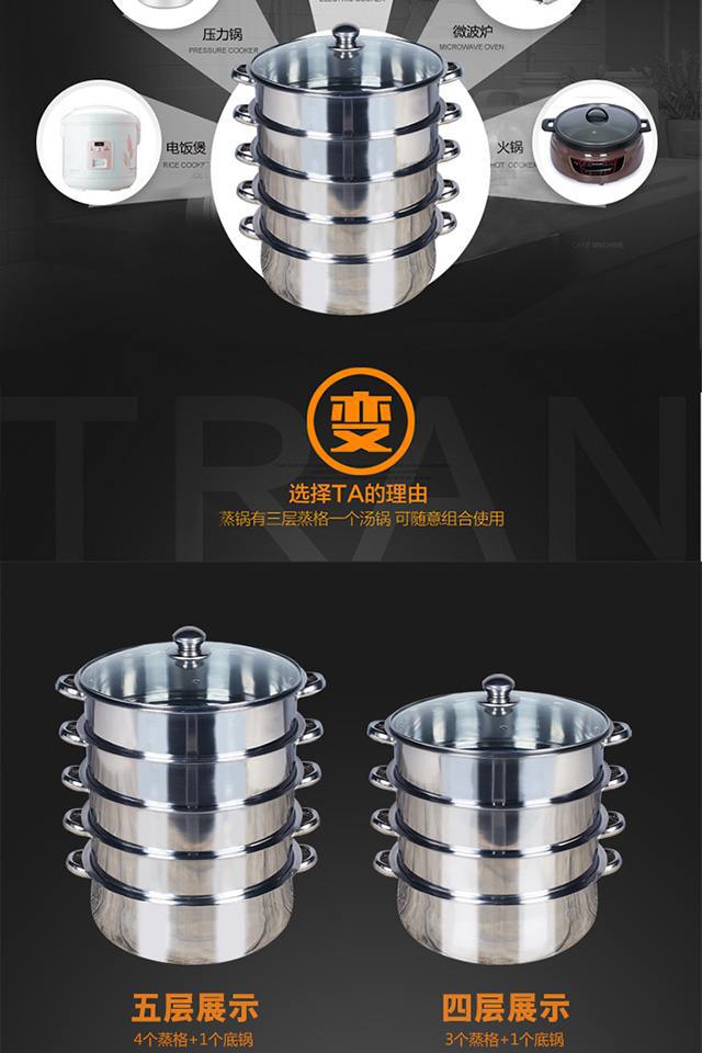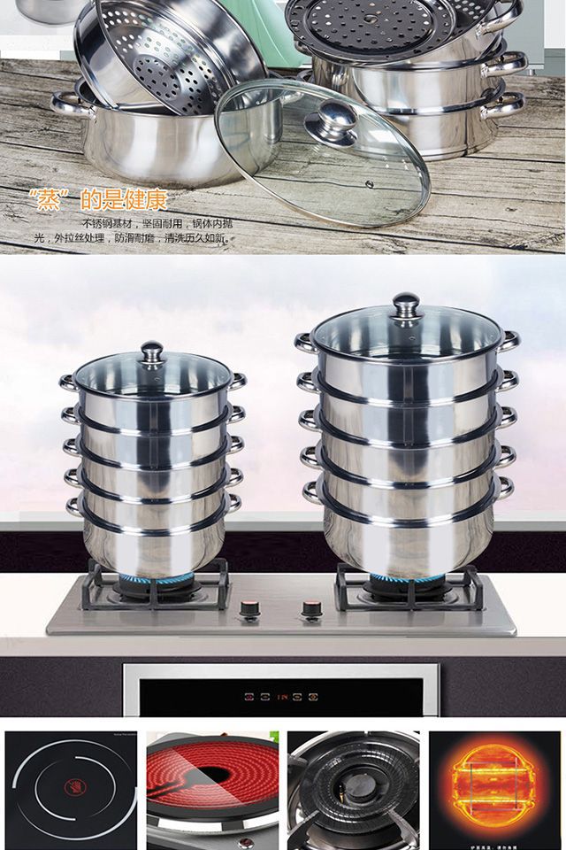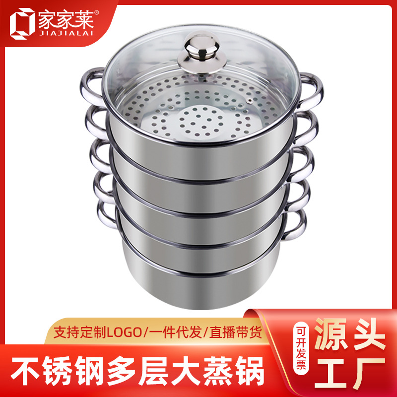 家家莱不锈钢多层蒸锅三层大蒸笼四层五层蒸锅蒸屉电磁炉通用锅具