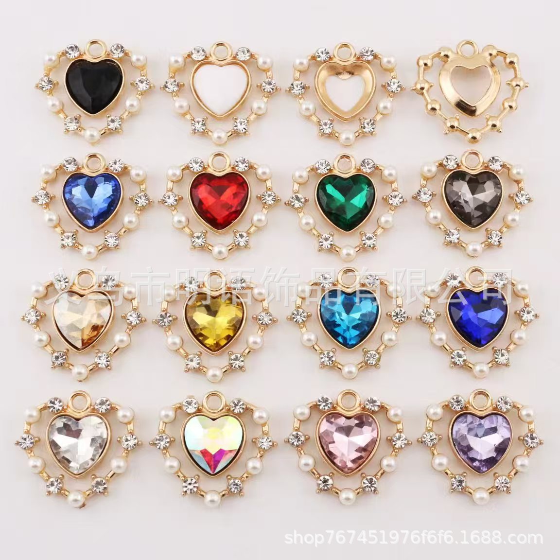 时尚新款25*27mm合金桃心珍珠水钻花盘扣吊坠diy耳环手链饰品配件