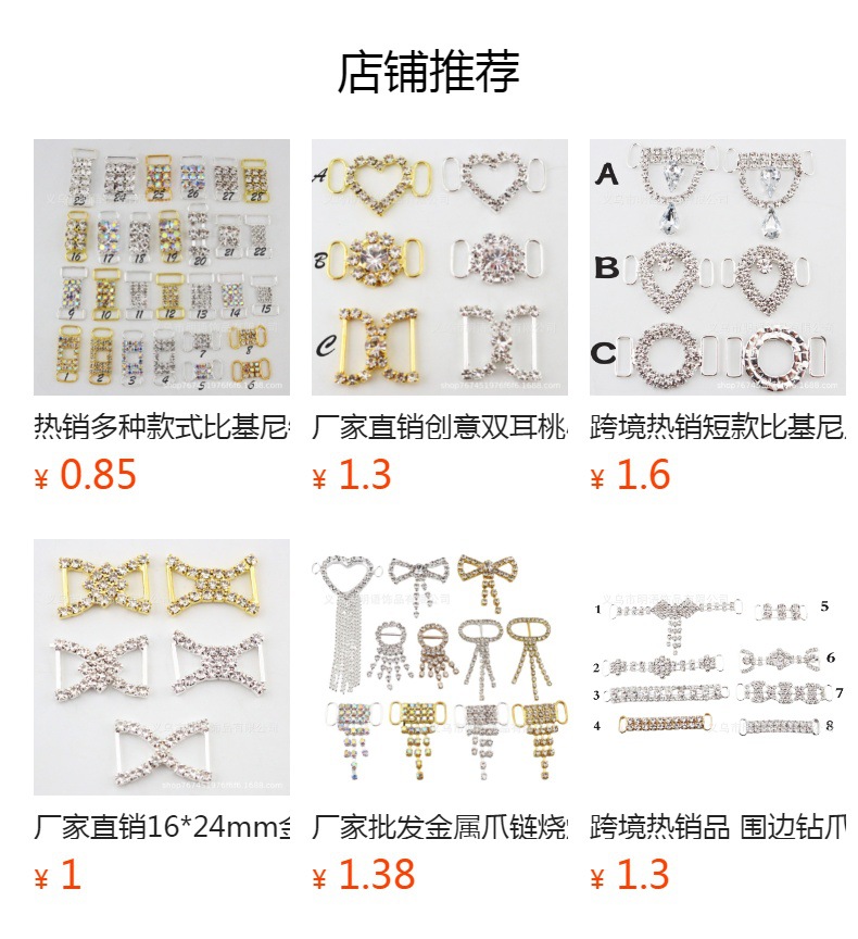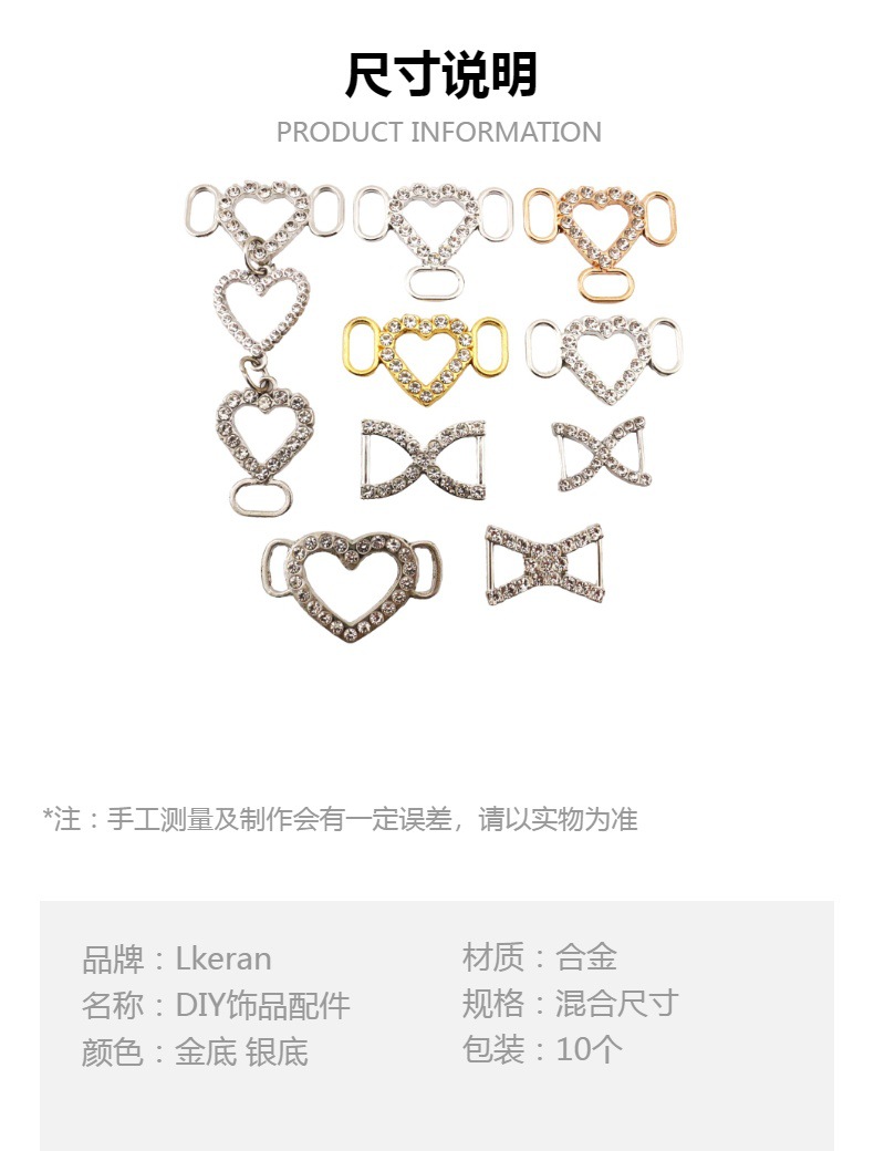 热销多种款式合金镶钻爱心吊比基尼泳衣链交换器 diy服装饰品配件