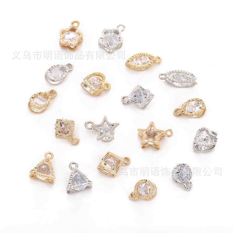 跨境热销锆石系列挂件五角星水滴心形 diy手链耳环项链包饰品配件
