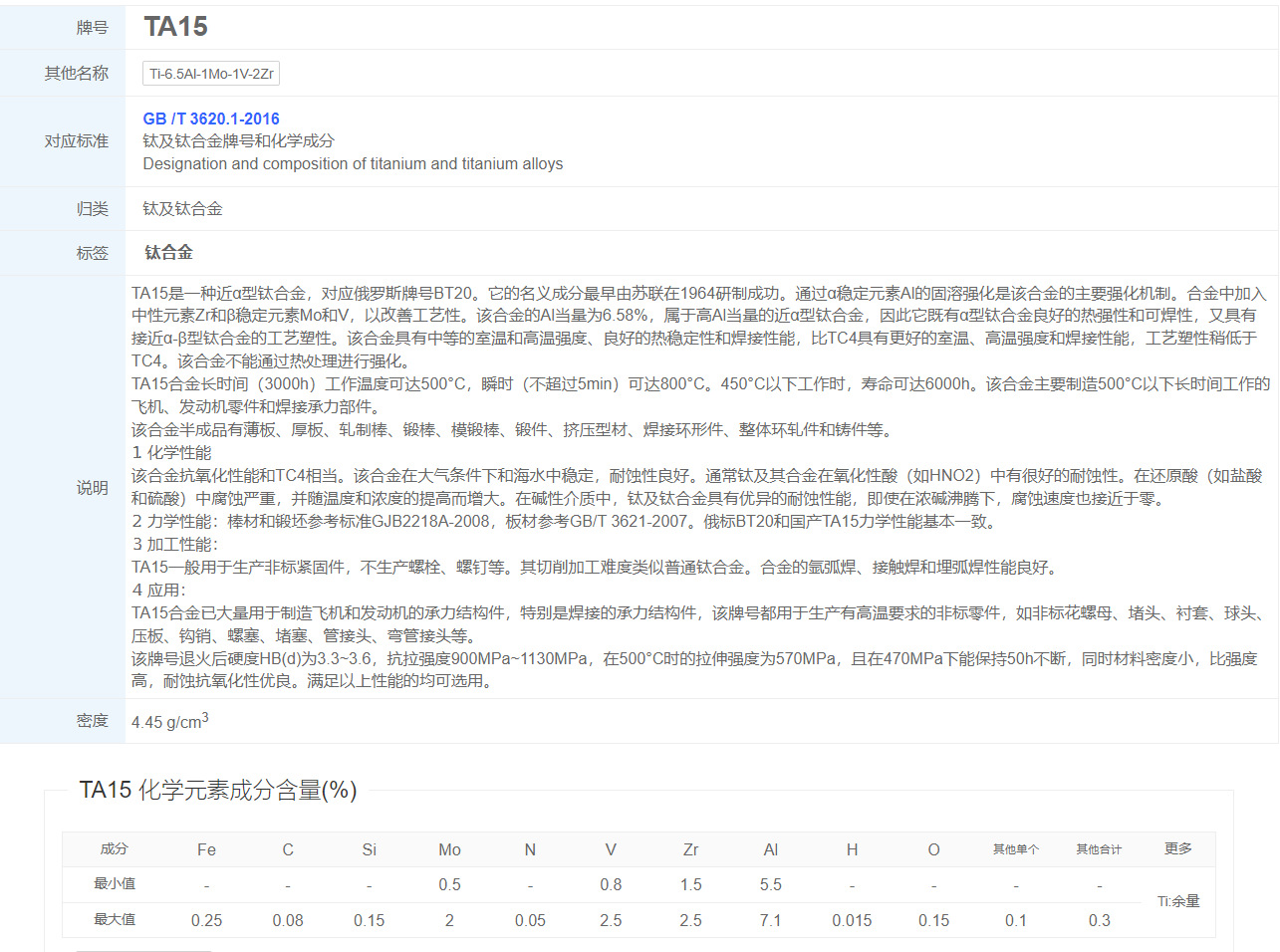 国家軍事規格チタン合金 TA15 丸棒 α タイプチタン合金 TA15 丸棒航空用 TA15 バー