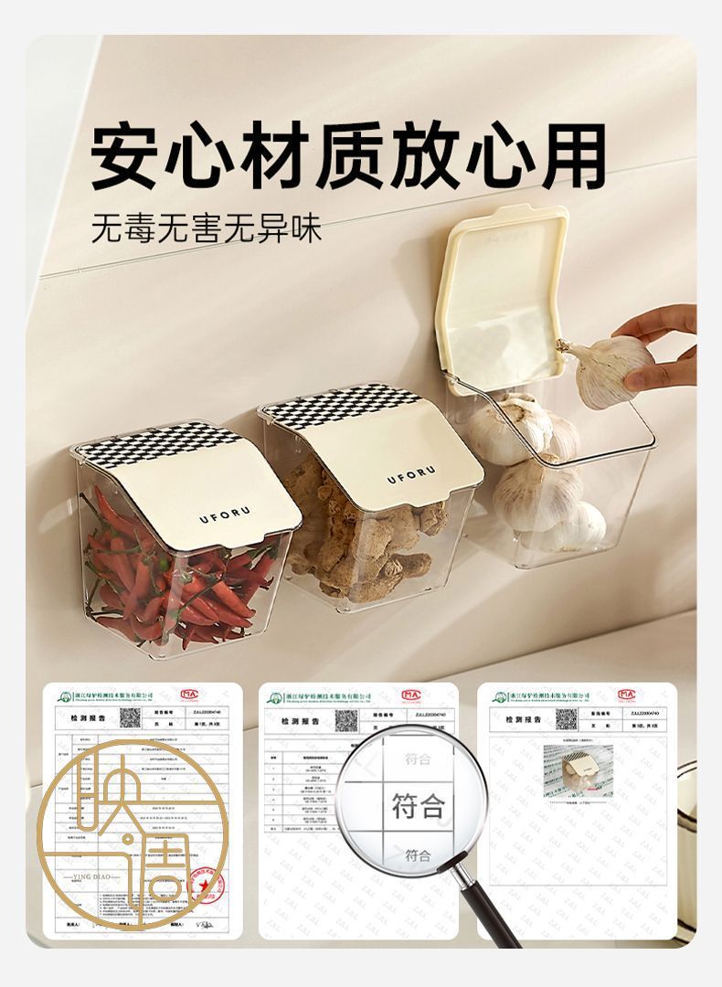 台所のネギとショウガのニンニクの収納かごは穴を開けないで壁掛けの収納ケースを開けて蓋の大容量の五穀の雑穀の収納の神器を持ちます。