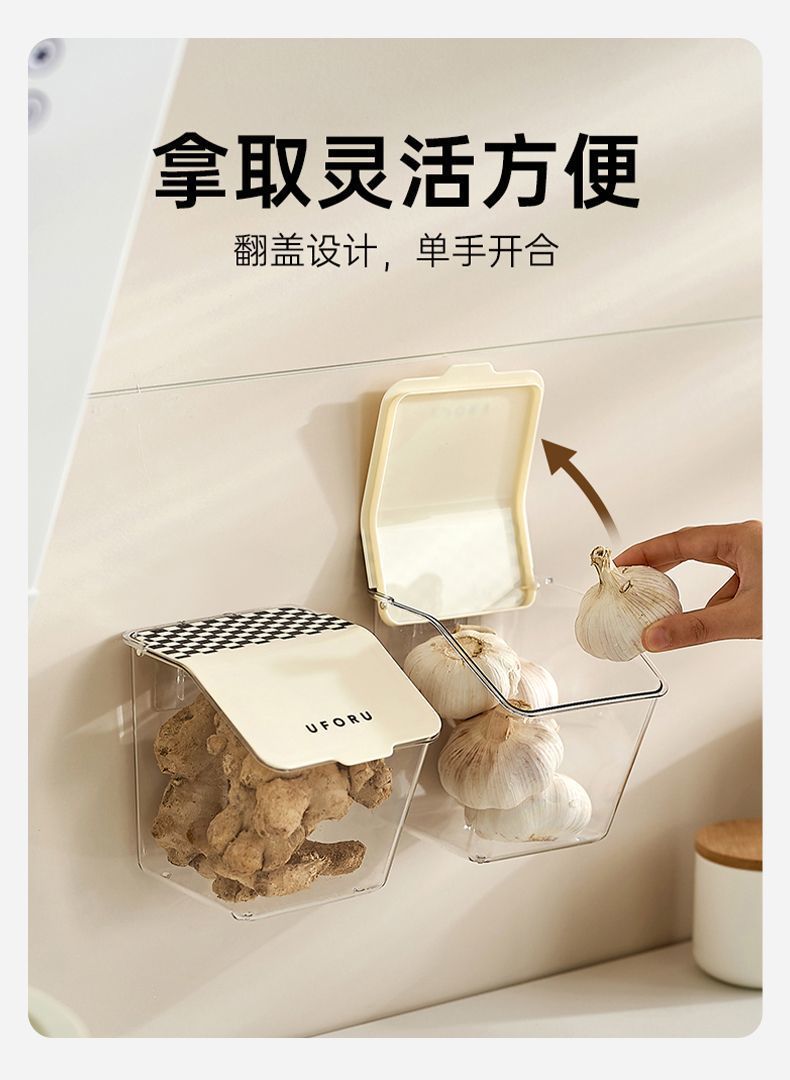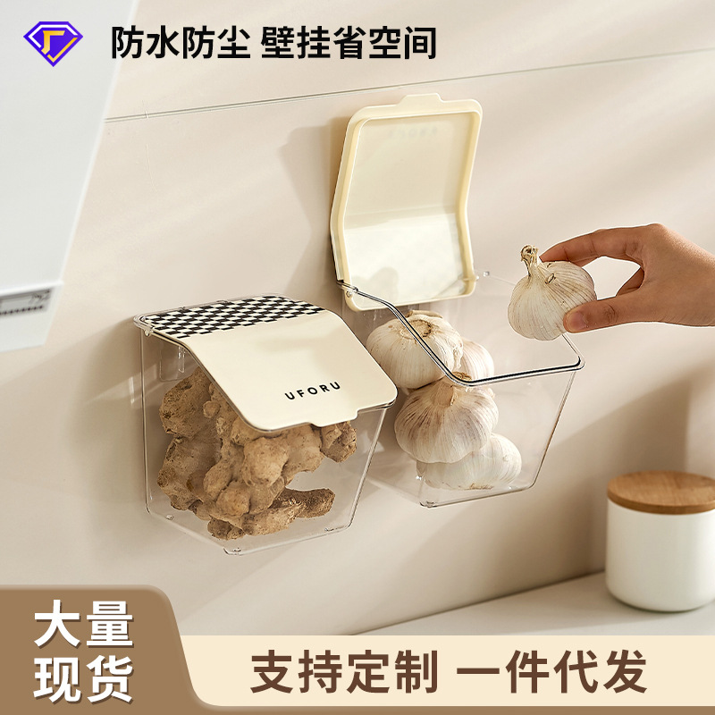 葱姜蒜收纳筐厨房大料挂篮多功能免打孔壁挂带盖防水葱姜蒜收纳盒