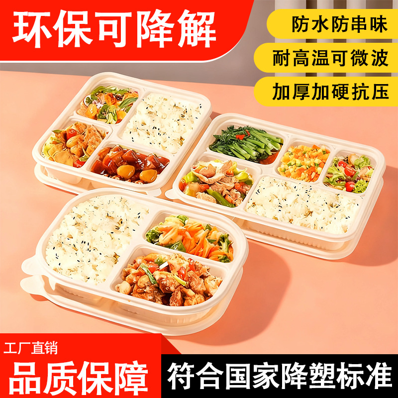 可降解一次性餐盒方形玉米淀粉三格四格五格六格外卖打包盒沙拉盒
