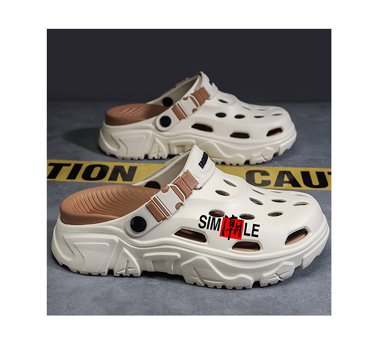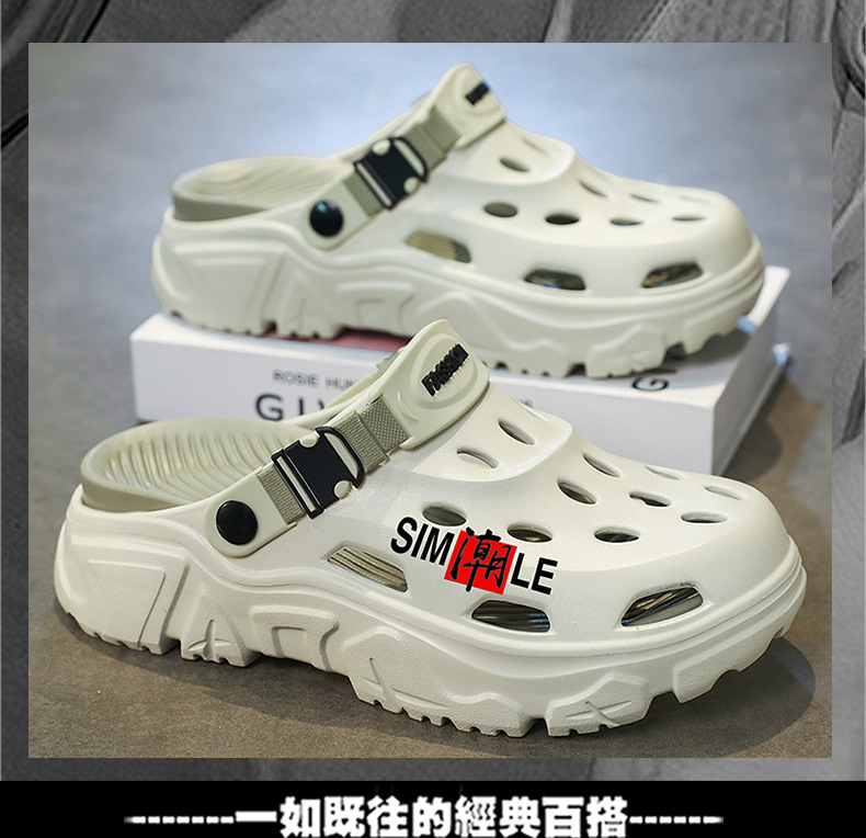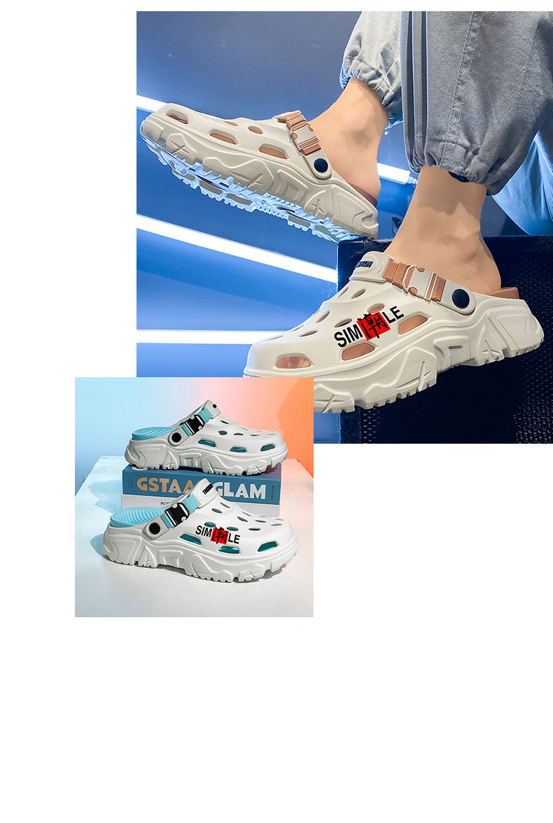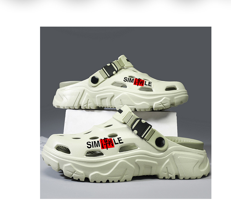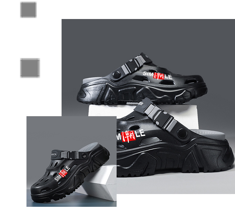 アウトドア大きいサイズの新しいメンズ無地つま先包み厚底滑り止め耐摩耗性サンダルファッショナブルでシンプルなビーチハーフスリッパ
