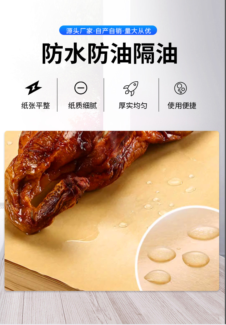 厂家批发食品级烤鸭专用垫纸烤鸡防水防油包装纸牛皮纸烤鸭淋膜纸