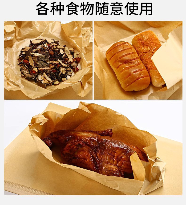 コーティングされたクラフト紙食品グレードの防水性と耐油性のローストダック包装紙高温耐性ベーキングペーパー食品包装紙卸売